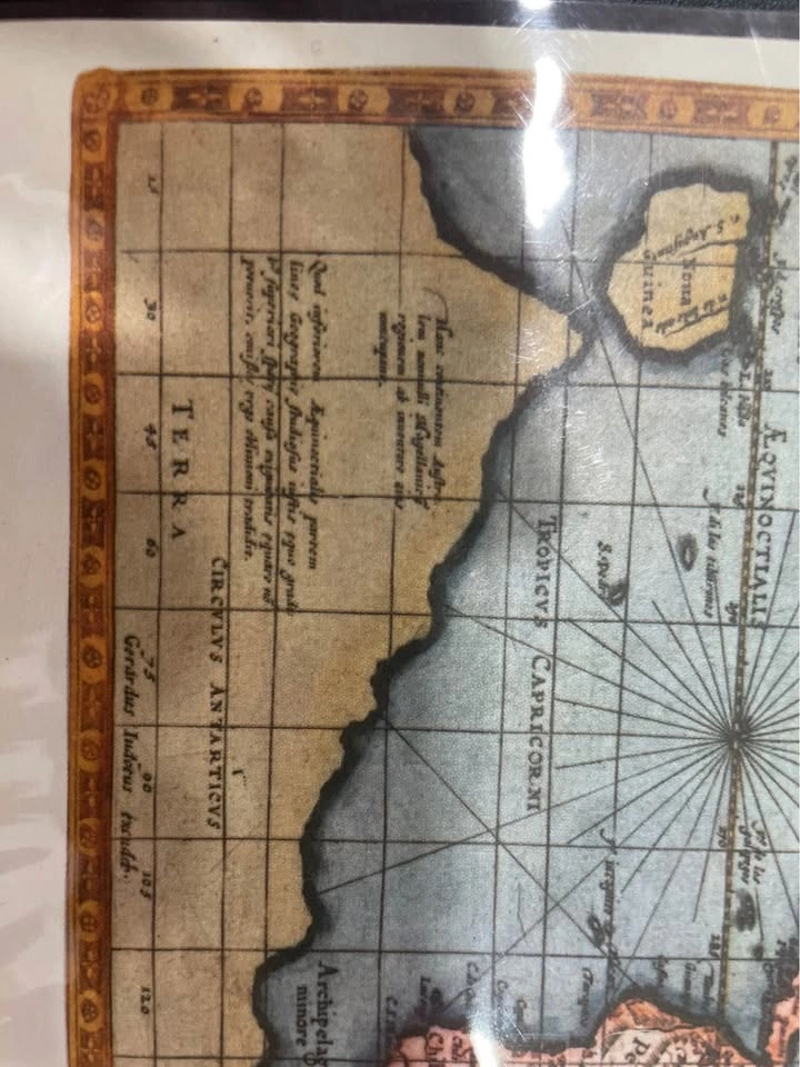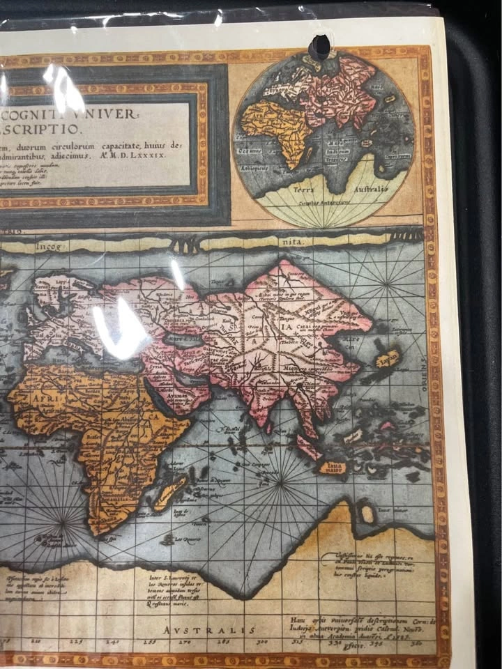 70Selling a Latin antique map print from 1593! The print features a detailed depiction of the world, with Latin text and intricate illustrations. It's a unique piece for collectors or anyone interested in historical maps. It would look great in a frame and a perfect gift.