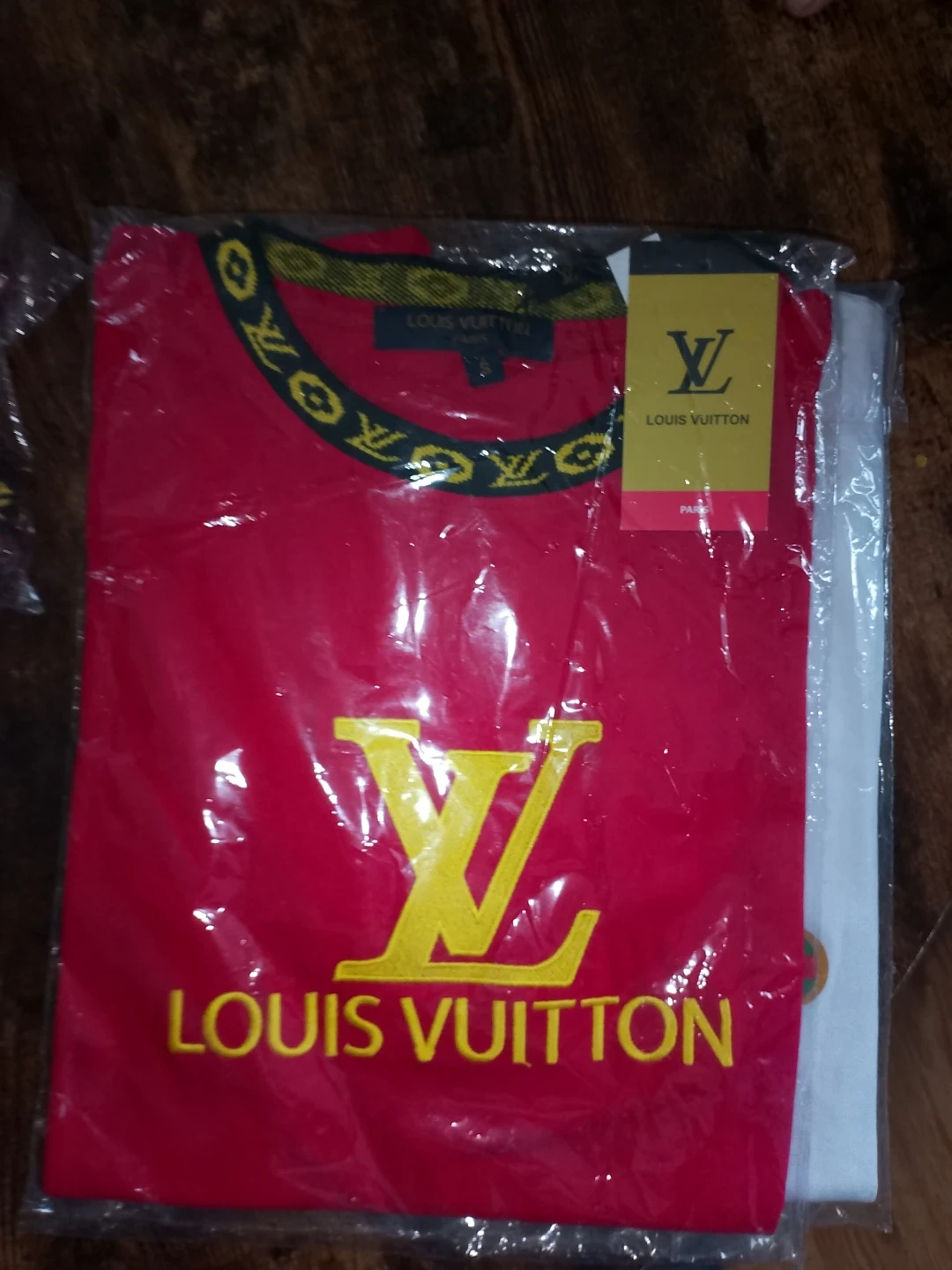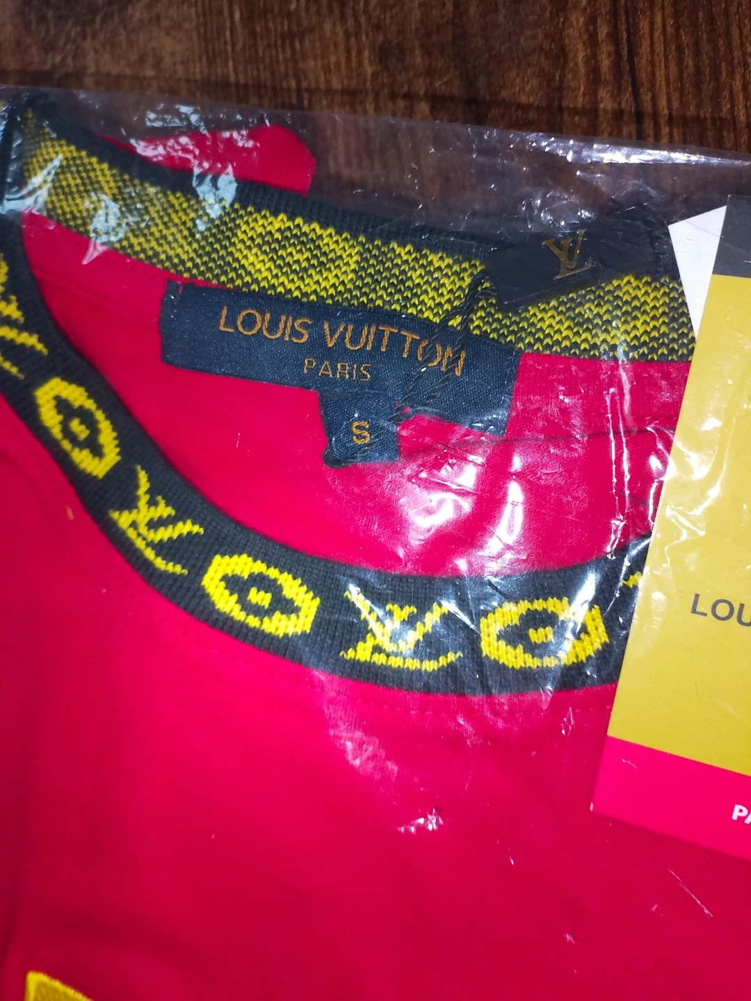 This is a Louis Vuitton t-shirt in red. It features the iconic LV logo and Paris branding. Size is S.