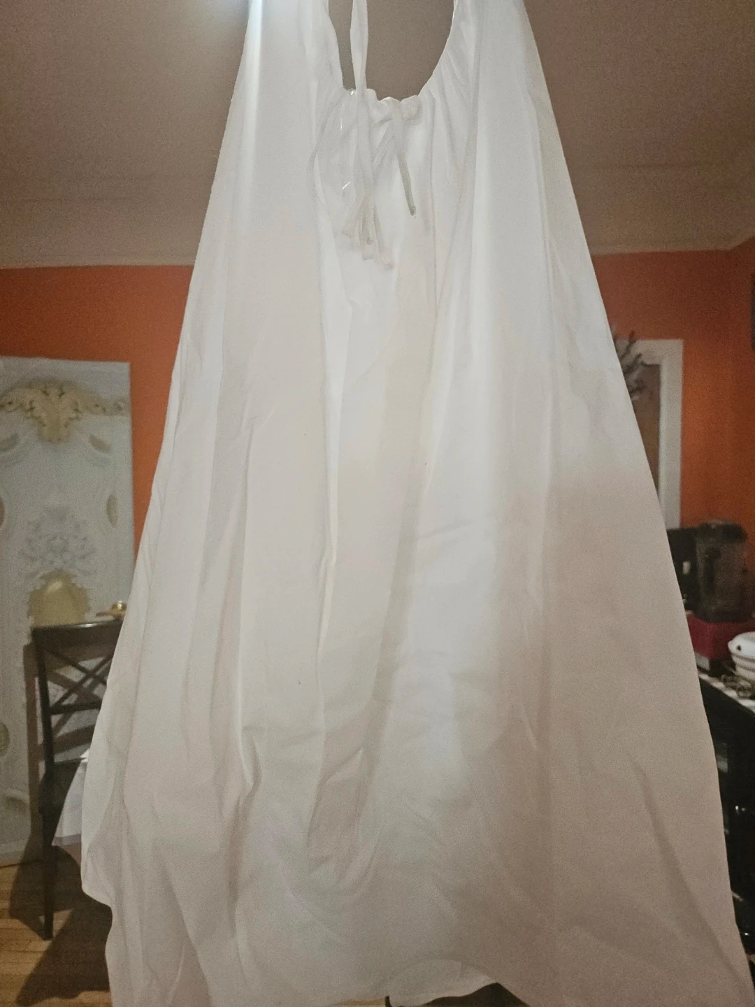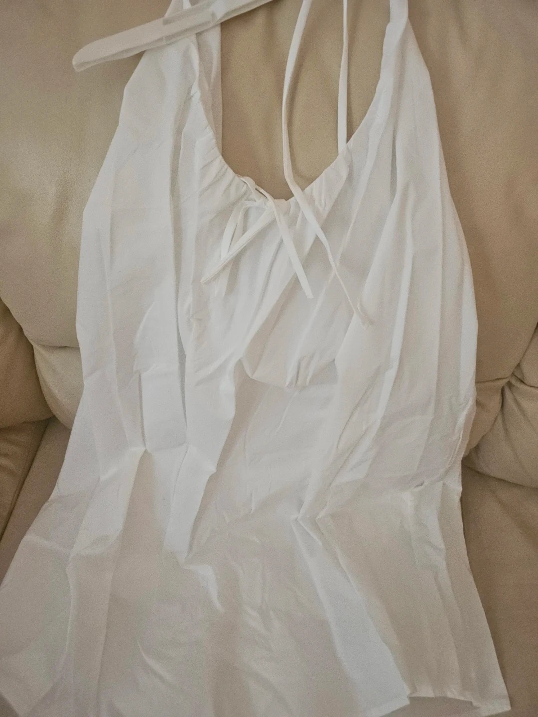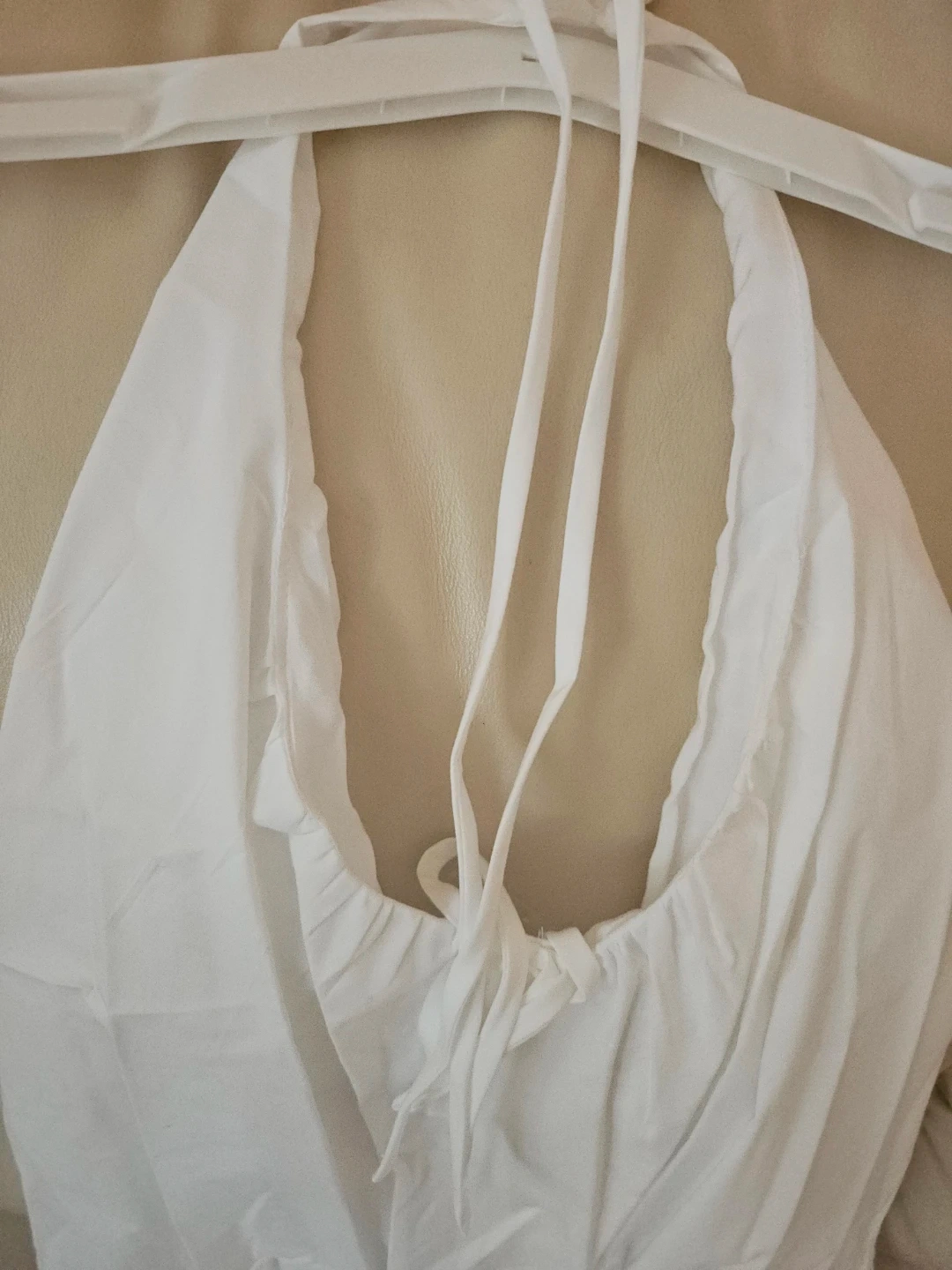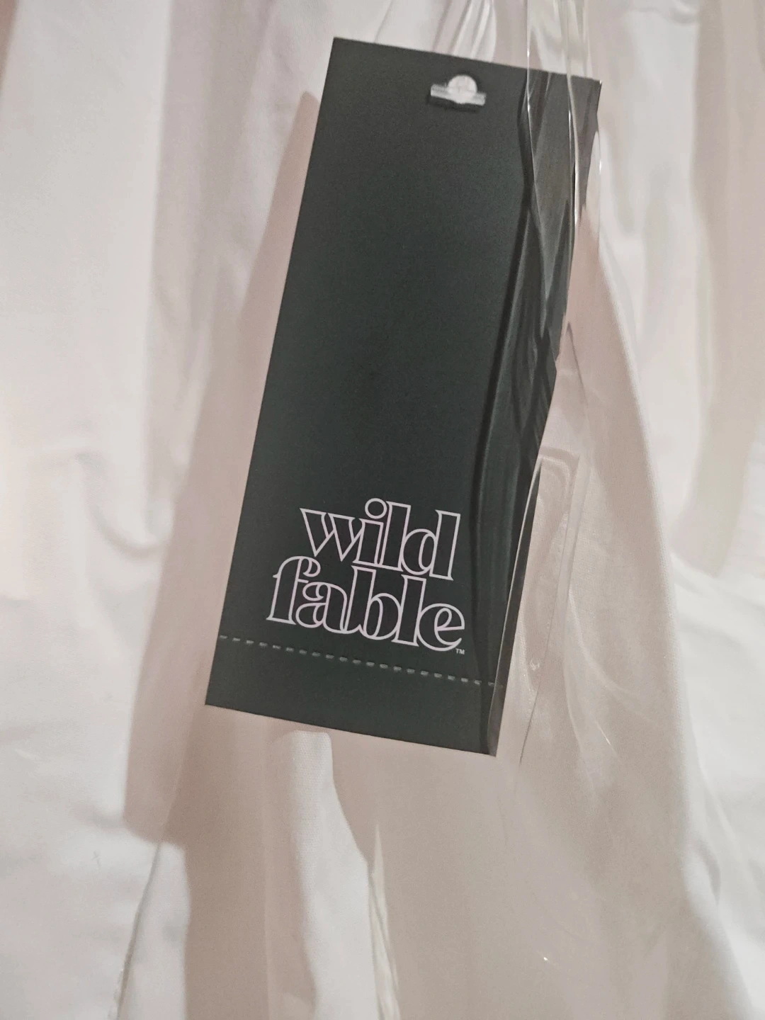 This is a Wild Fable white mini dress. It's a size small. The dress is made of cotton and has a halter neckline.