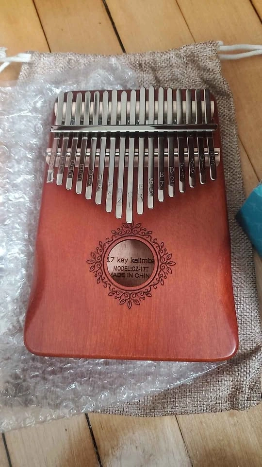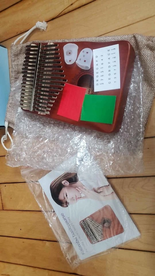 17 Key Kalimba, still in box with instruction manual, finger guards, and stickers for keys. As shown by the video, I never really learned how to play it, so it's barely been handled.