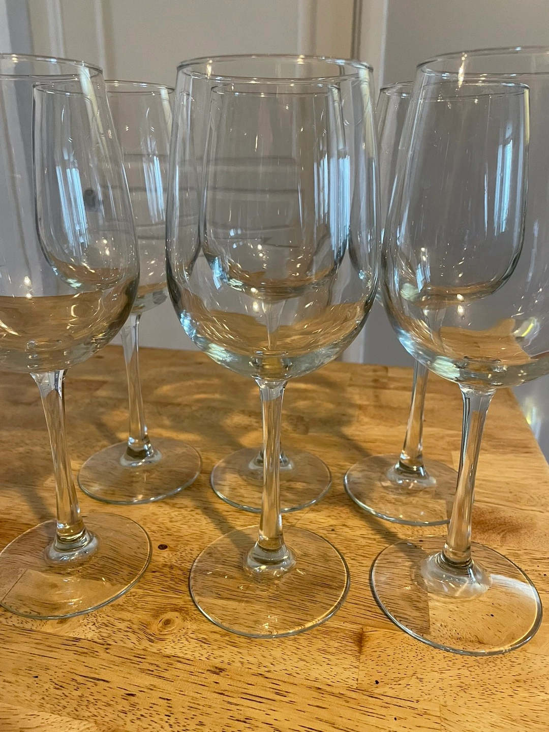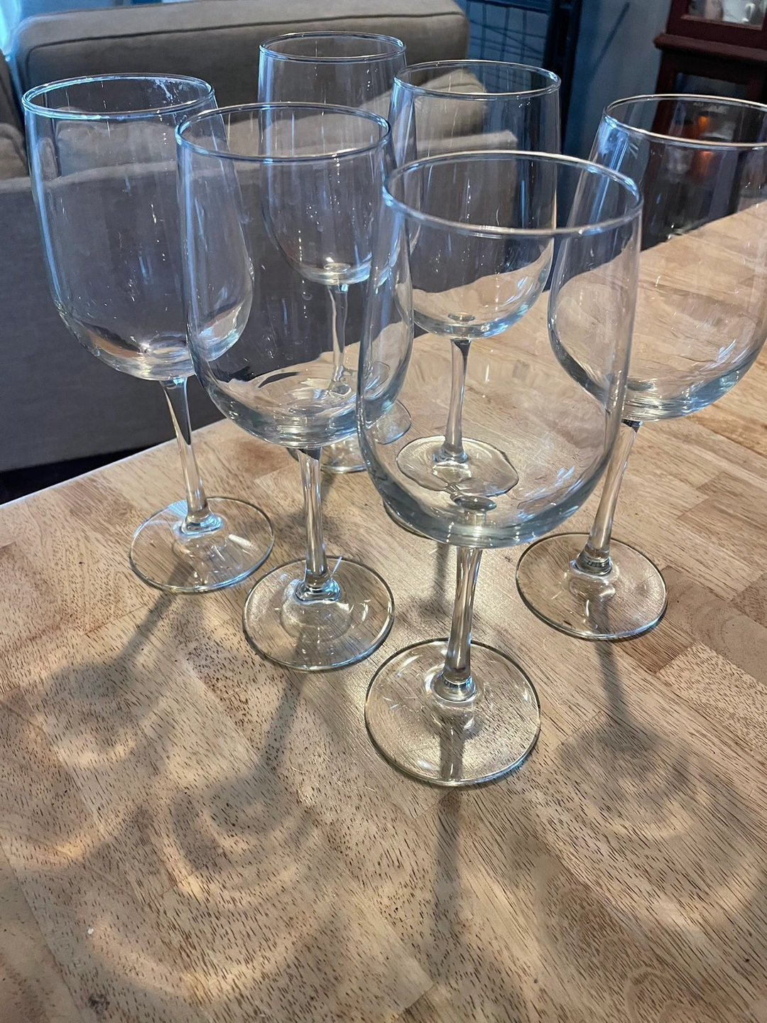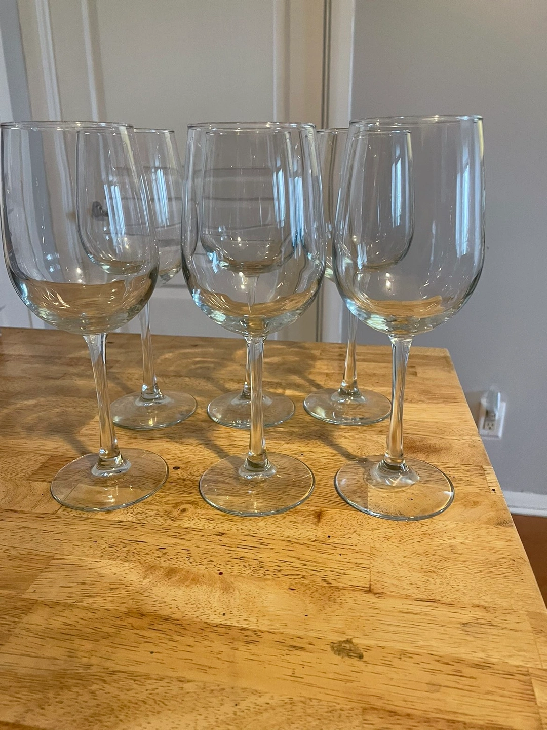 Purchased them unused, originally had set of eight but used a few only so selling six. I have original box. If you’re interested in still having complete set of eight I can add them in for total of $25. Good quality King stem u shape could be great for both white and red wines.