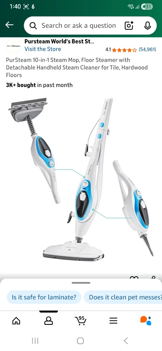 Selling a PurSteam 10-in-1 steam mop. It's a floor steamer with a detachable handheld steam cleaner. Great for tile and hardwood floors and other small corner and surfaces. Comes in original box with all the attachments and an unused mop pad. Bought last November, was used 5-10 times only for floor steaming.