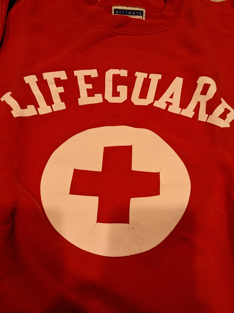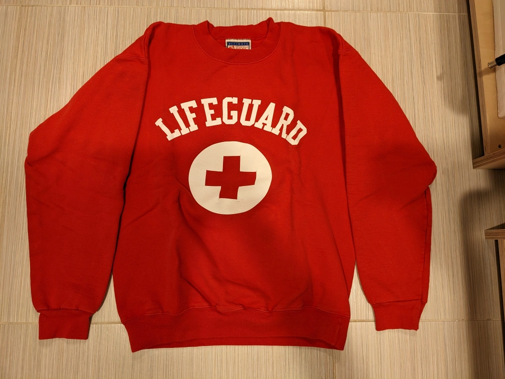 893Lifeguard Sweatshirt 🥕#freecycle🥕 No size tag but I think it's a small pls. check the measurements below. Chest- 19" in fold Body Length - 22" Sleeves- 20" Pick up only! Thanks