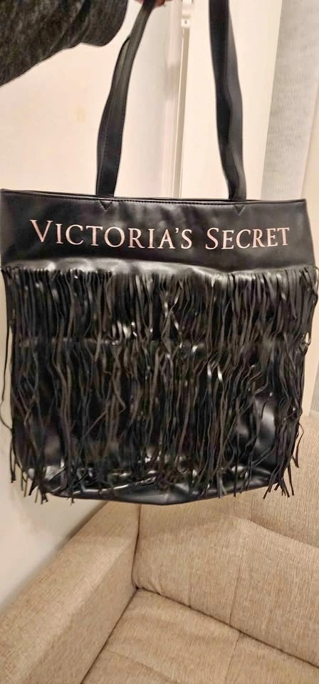 Never Used Victoria's Secret Fringe Faux Leather Large Tote Bag Purse. Height 17", Depth 4", Width 16". Limited Edition. Excellent condition.