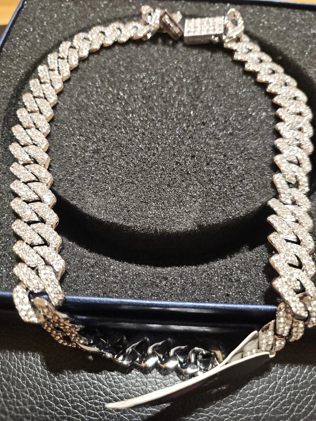 High-quality Cuban link chain necklace. Designed in USA with sparkling iced-out details. Includes original box.