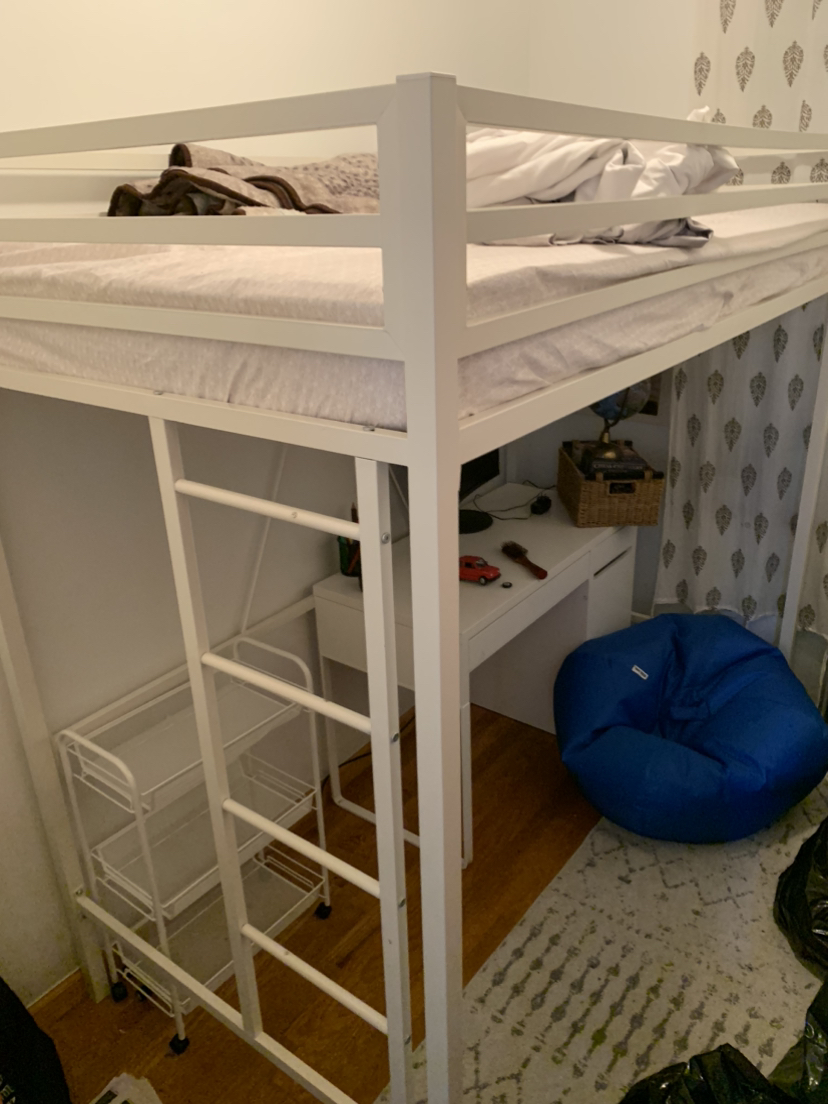 White Twin Bed Frame & Desk. Crate&Barrel