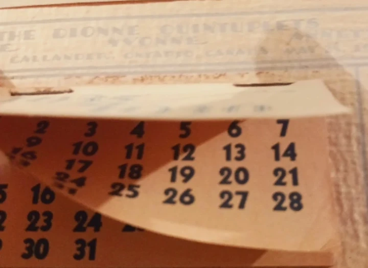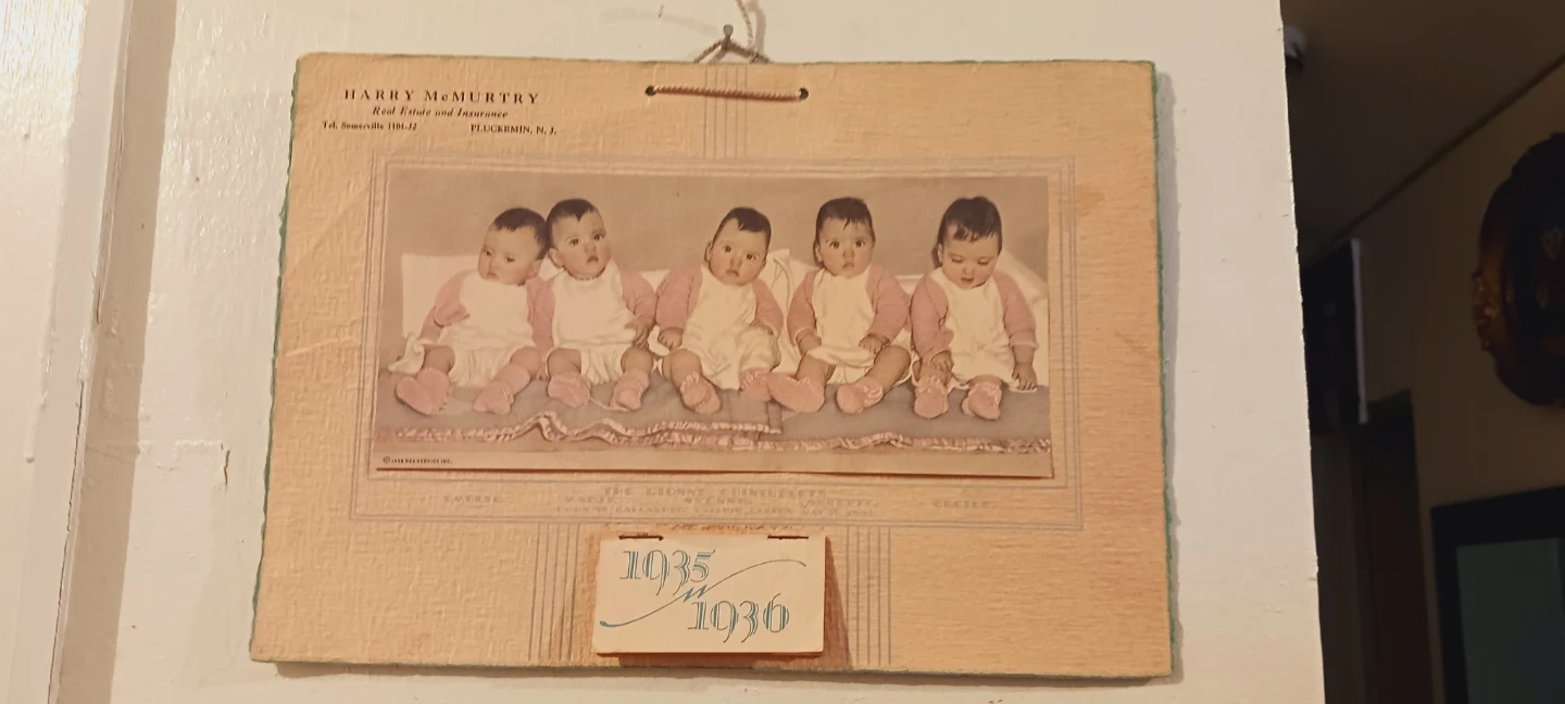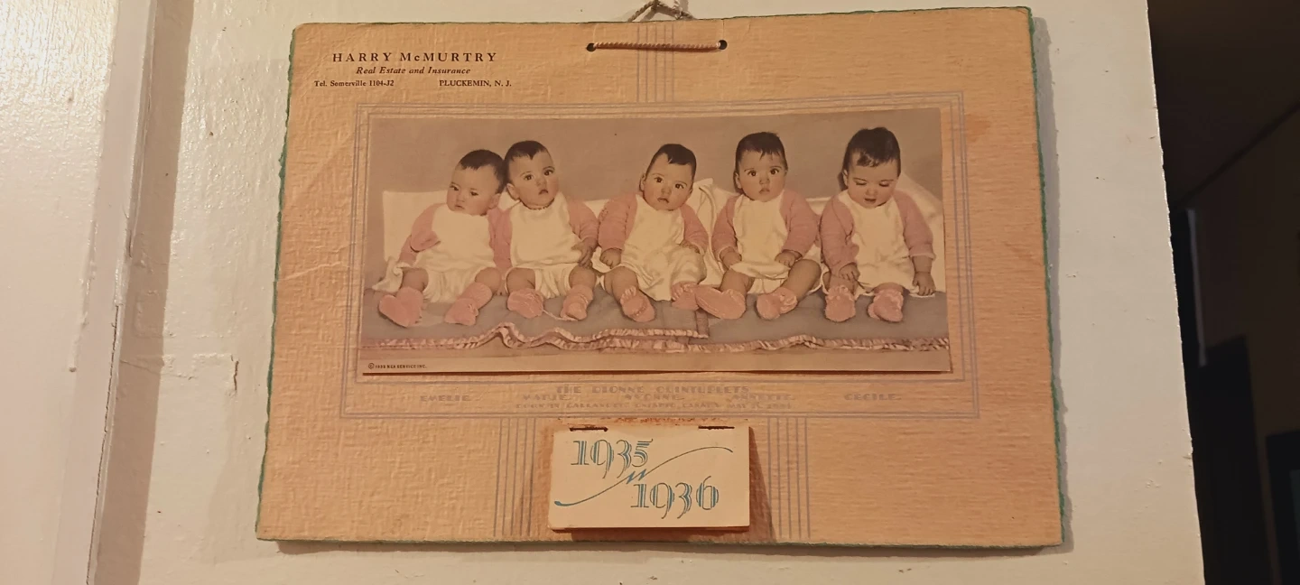 1000+Collectible Vintage 1935/1936 "THE DIONE QUINTUPLETS" CALENDAR.. The vintage calendar featuring the Dionne Quintuplet is from 1935-1936 by Harry McMurtry Real Estate and Insurance, Pluckemin, N.J. 11"×8". Good condition. ALL MY PRICES ARE NEGOTIABLE !!