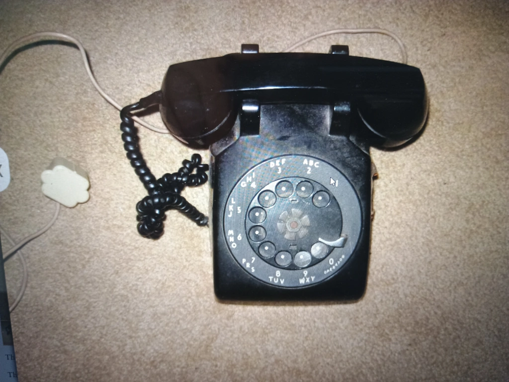 Black 1954 Western Electric rotary phone. Includes coiled cord and wall attachment. It was in my grandparents house for years and worked fine. Great for a vintage movie prop or anyone that likes old items such as these.