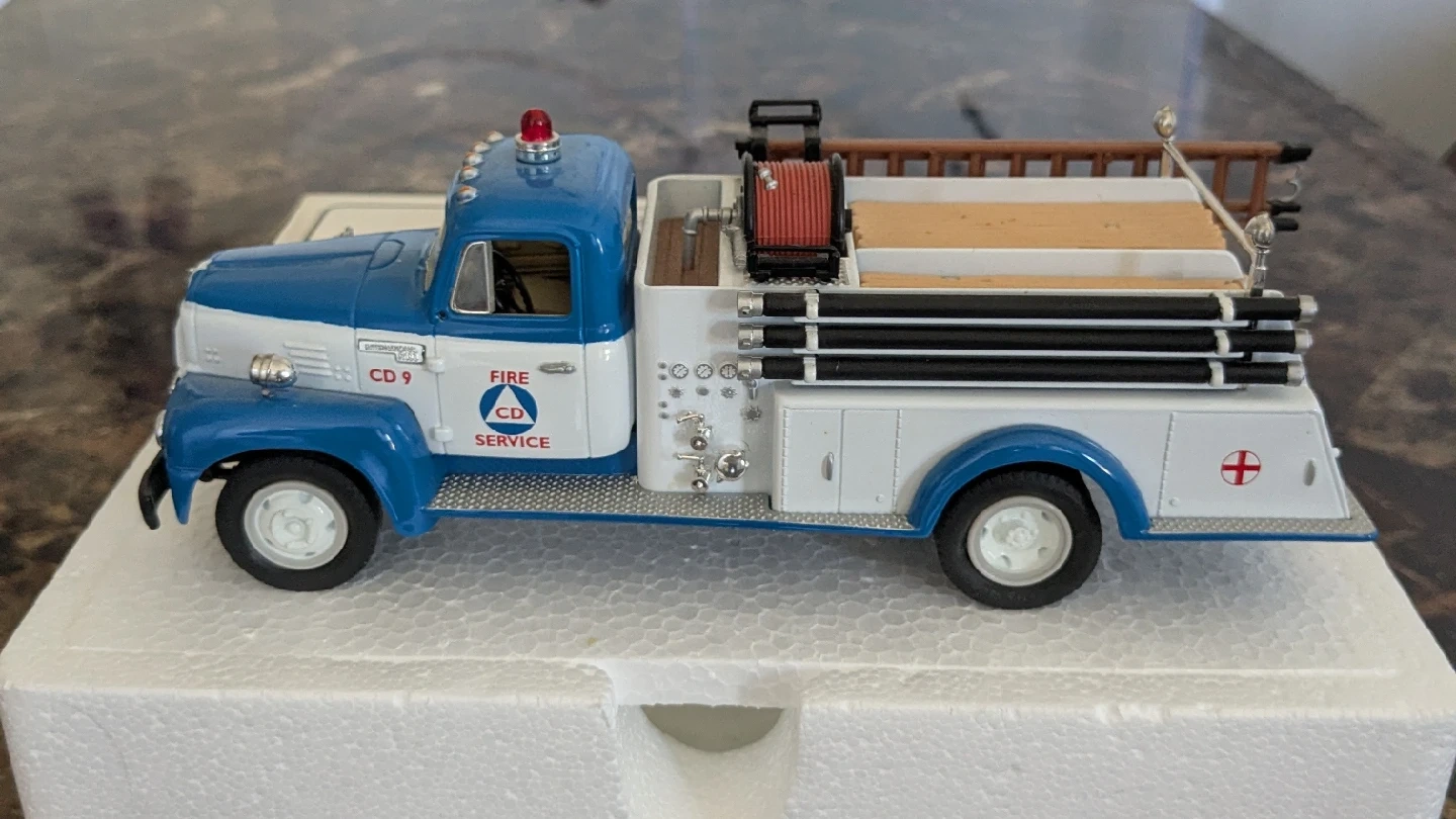 65Selling a 1957 International R-190 Fire Truck model. It's 1/34 scale and comes with the original box. Recommended for ages 10 and over