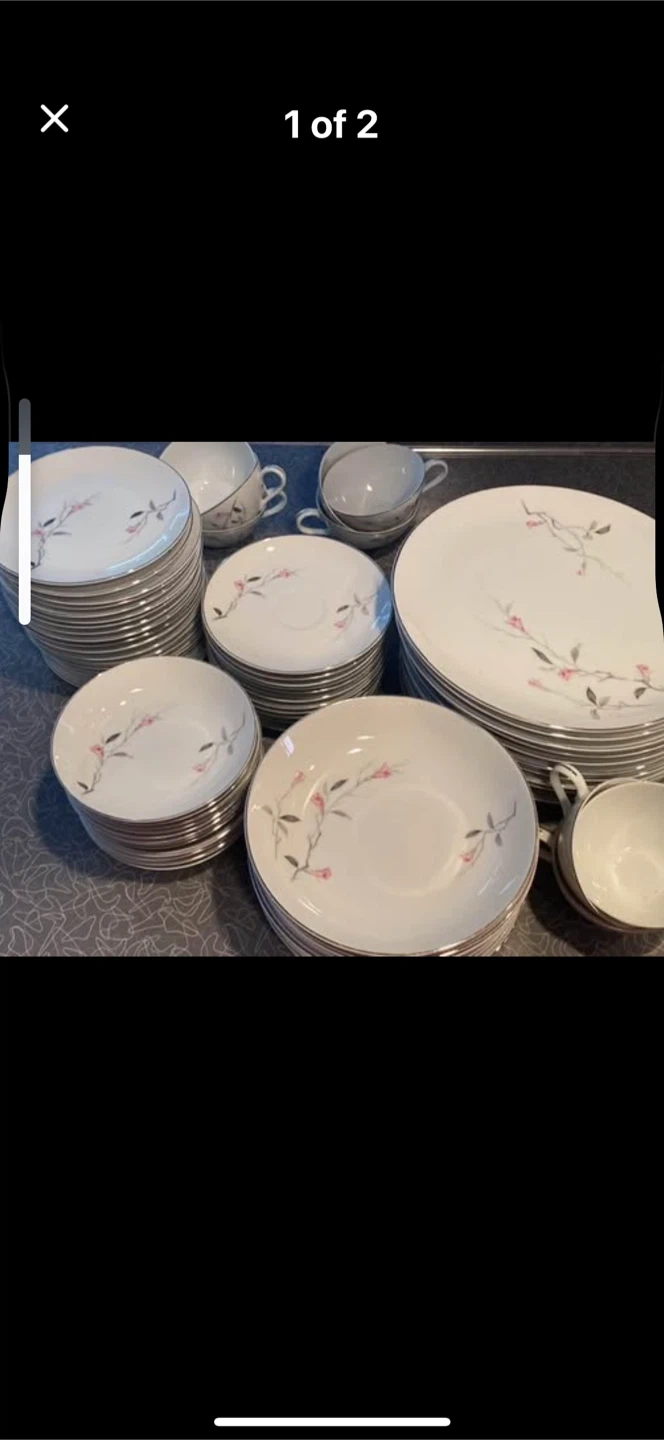 10Selling a vintage fine china set. It features a delicate floral pattern with a silver trim. Perfect for adding a touch of elegance to your dining experience!