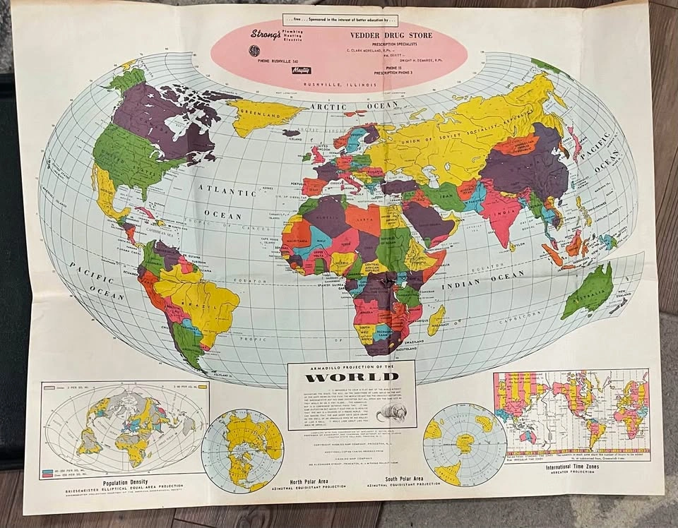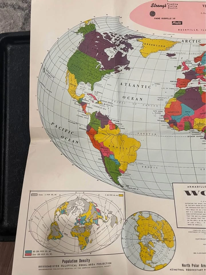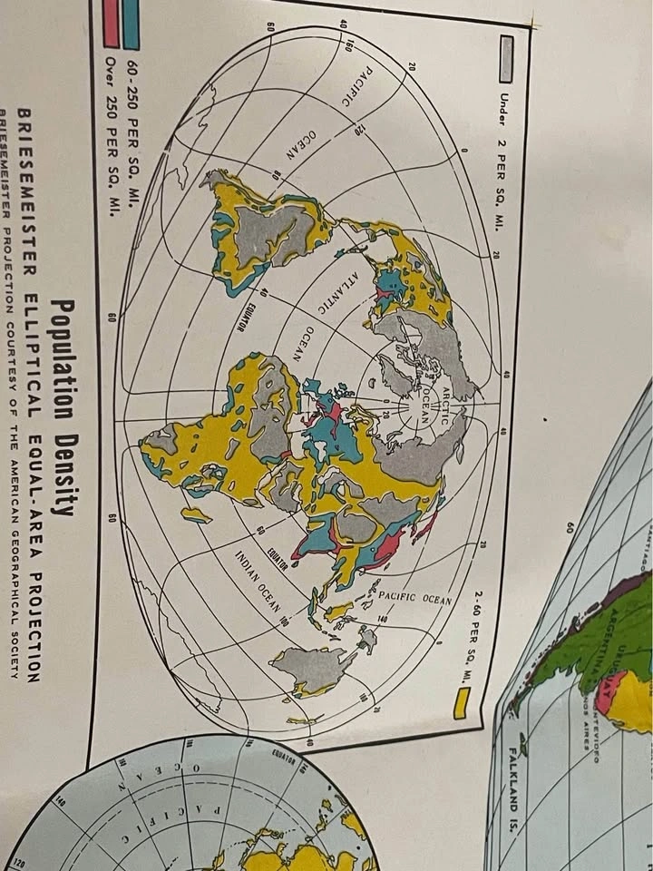 70I have a world map from the 1960s. I believe, it has some interesting aspects such as showing the population density of the world at that time, let me know if you have any specific questions.