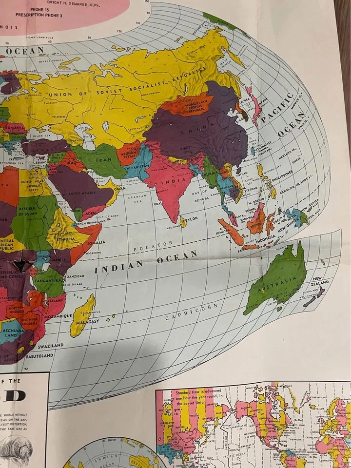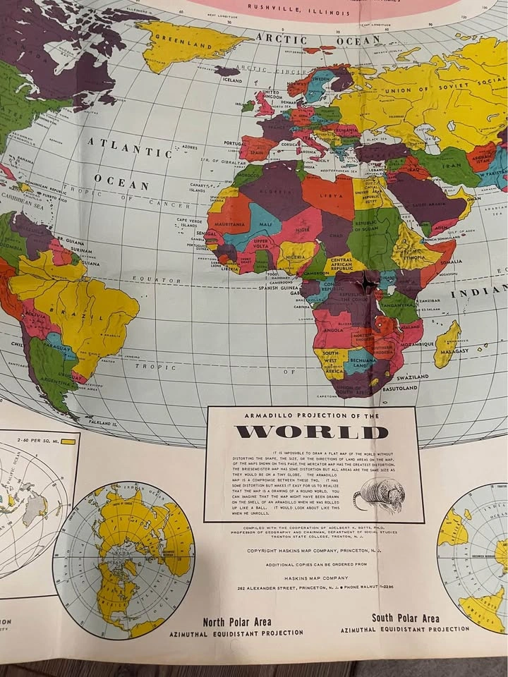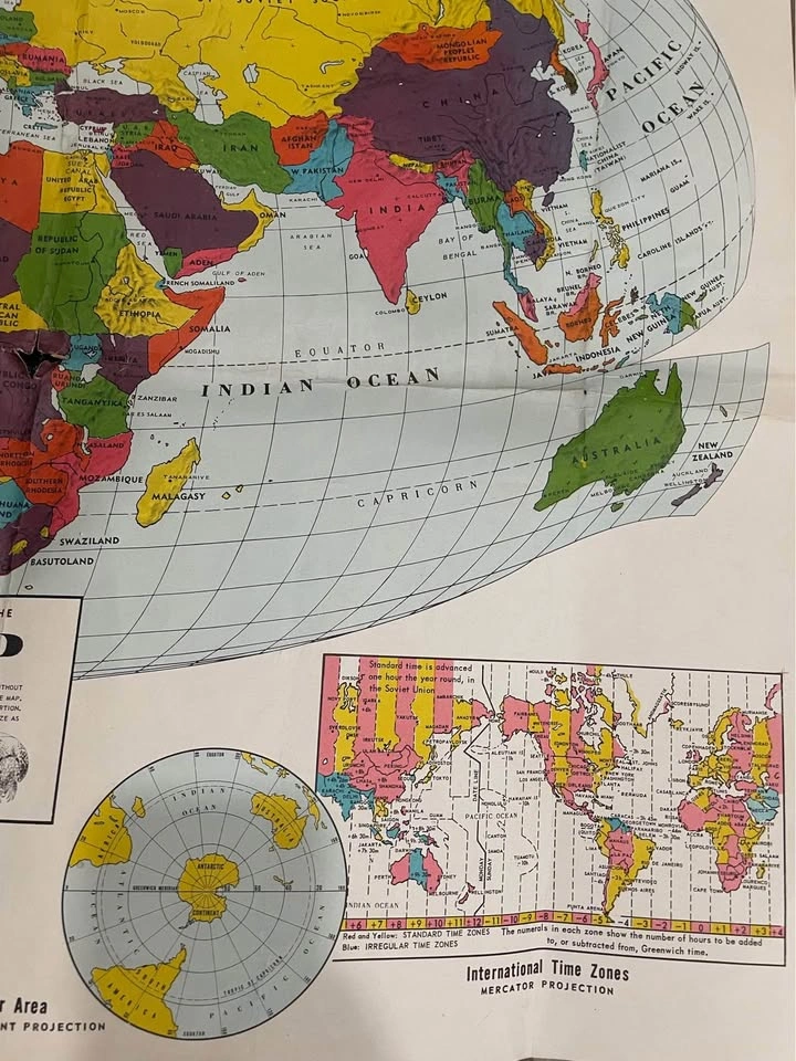 1967 World Map-Very Detailed-28”x24”