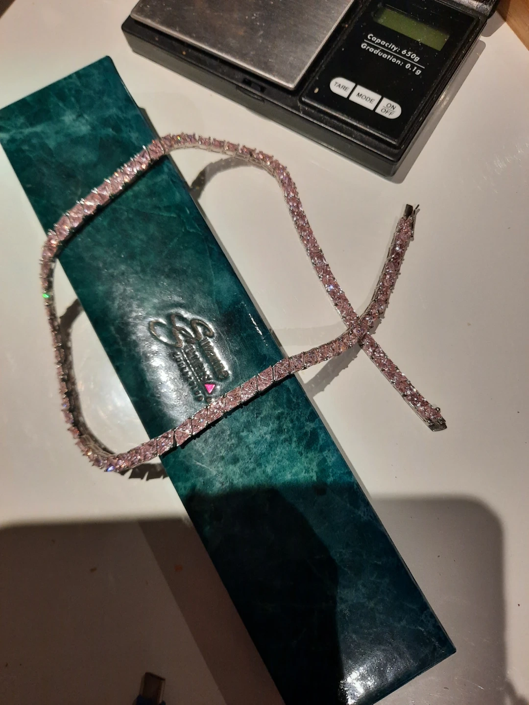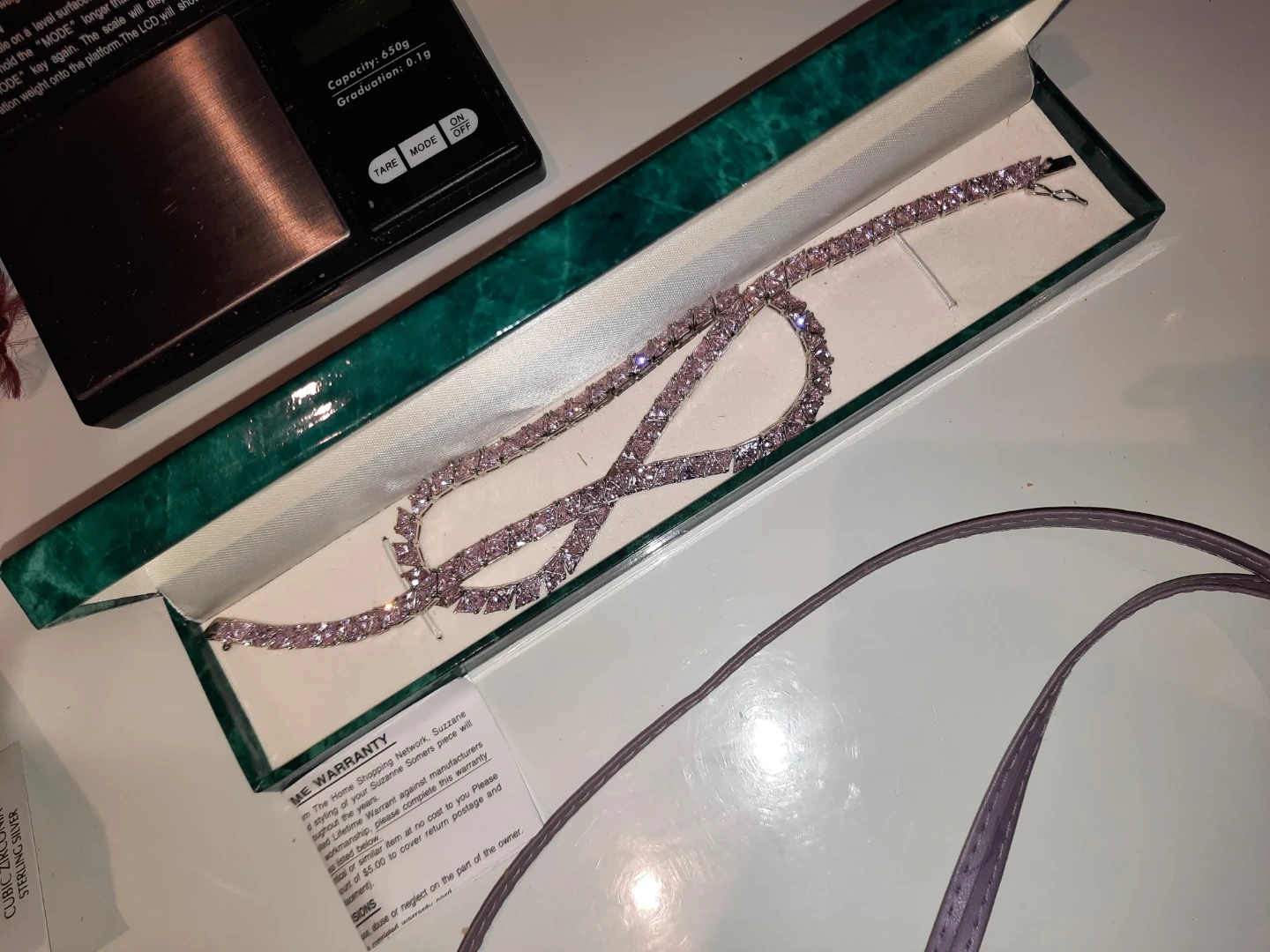 New SUZANNE SOMERS SEXXXY PINK Tennis necklace π π Heavy 31.8 grams!!! authentic solid Sterling silver rhodium plated solid!!! 18" length