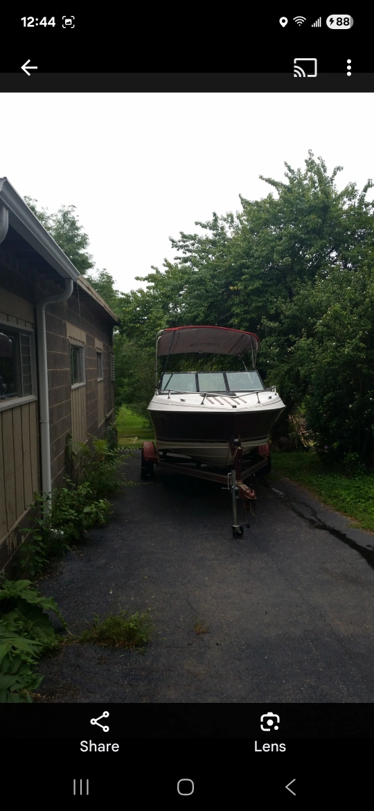 1991 19' with trailer v6 chevy motor boat brand knew starter ,bulge pump pretty much bran knew E load trailer tires. motor and trns is good 馃憤 interior good 馃憤 needs knew baring on the out board. 4 bolts .grease the fuck on the knew baring and reinstall. trying to make room for my knew one. clean tile, I have original manual from dealership from Wisconsin boat. with trailer i belive she weighs 3,200 lbs