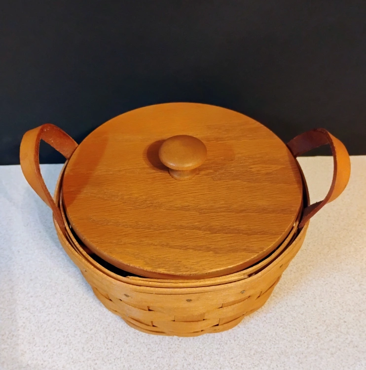 Show all1993 LARGE LONGABERGER ROUND BASKET WITH LID