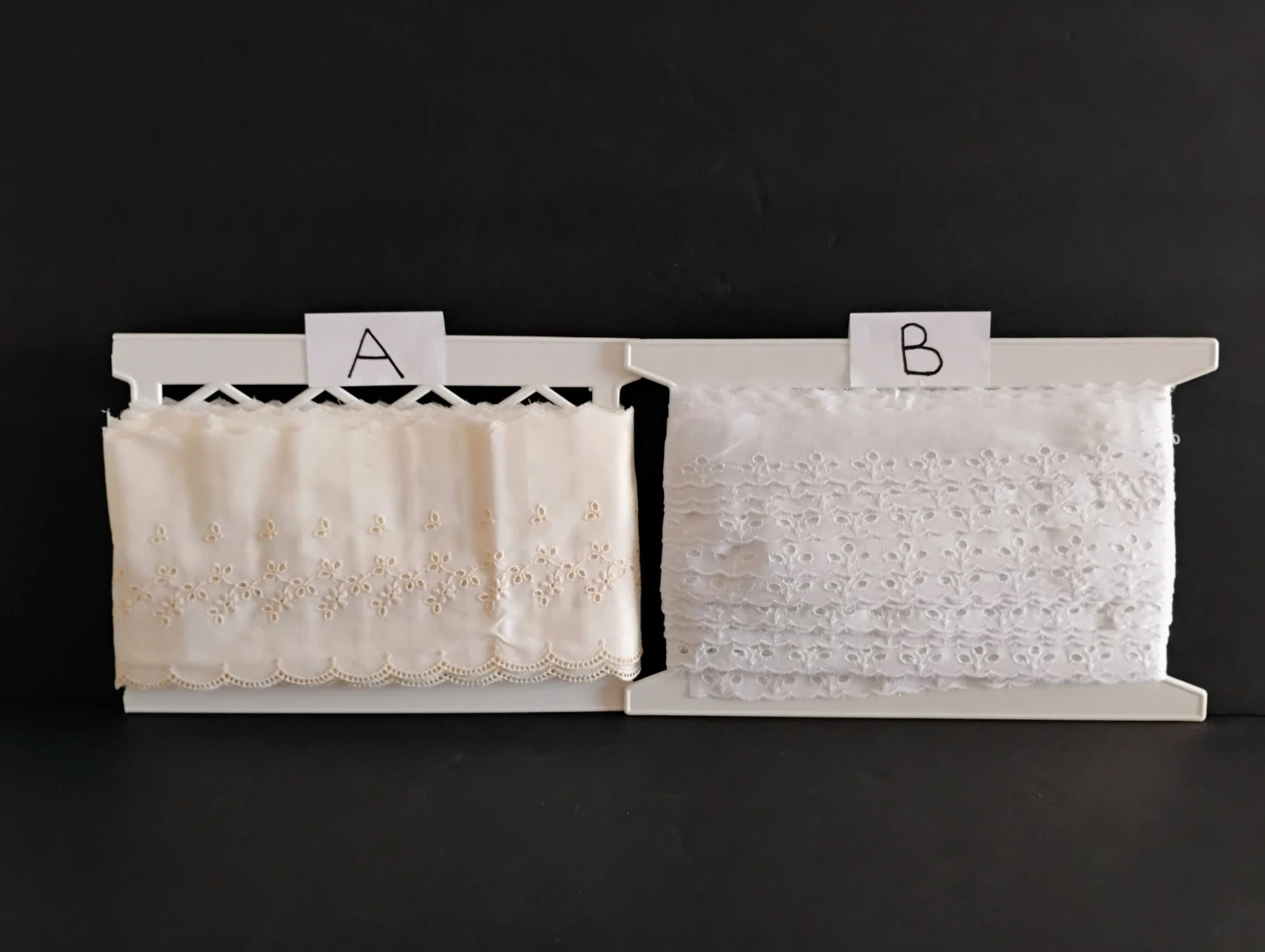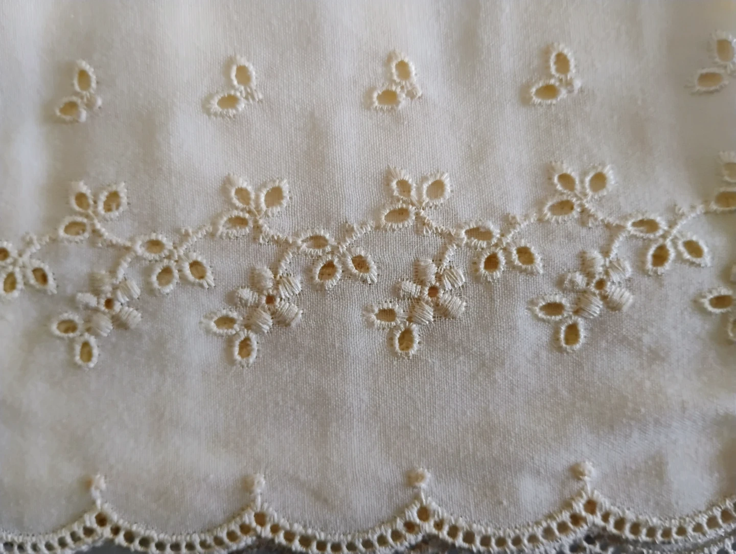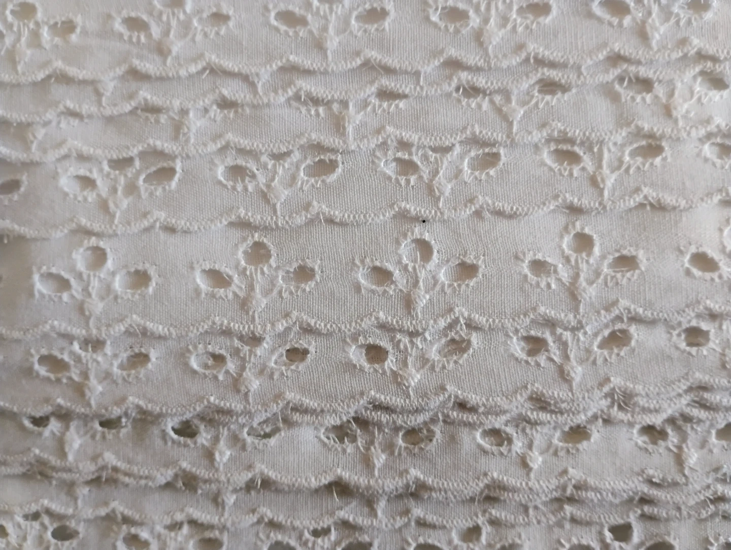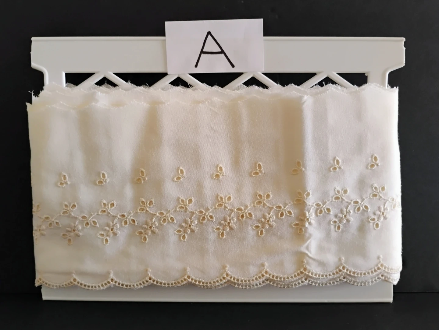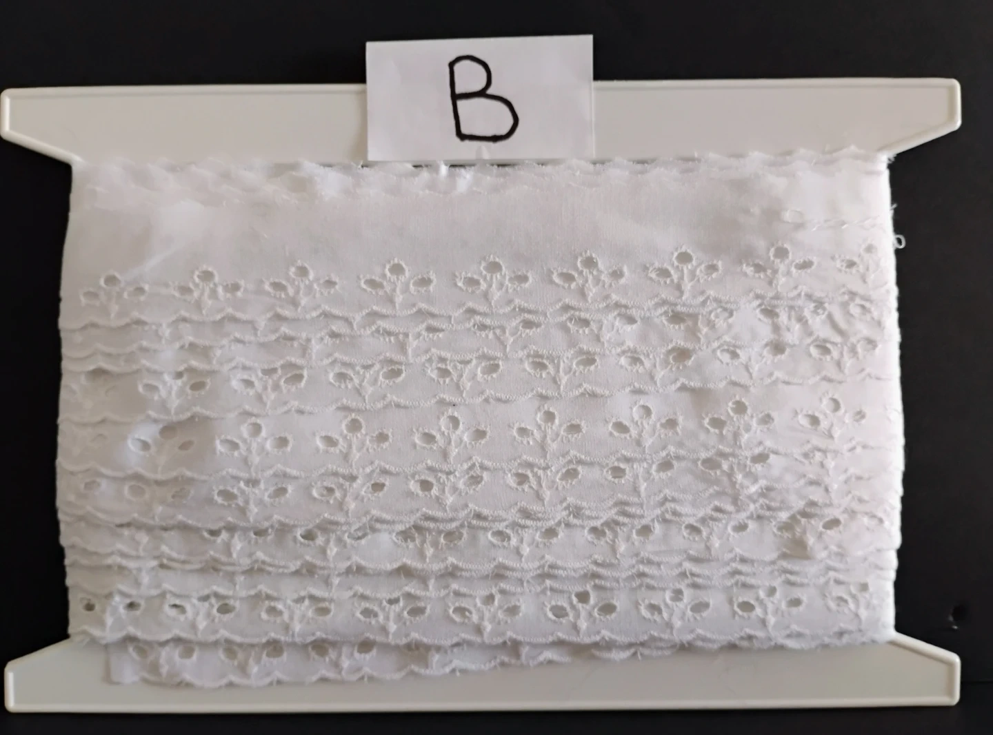 Surplus supply of “new” eyelet scalloped cotton trim. Retired from teaching so no longer need these. Non-smoking and pet free environment.