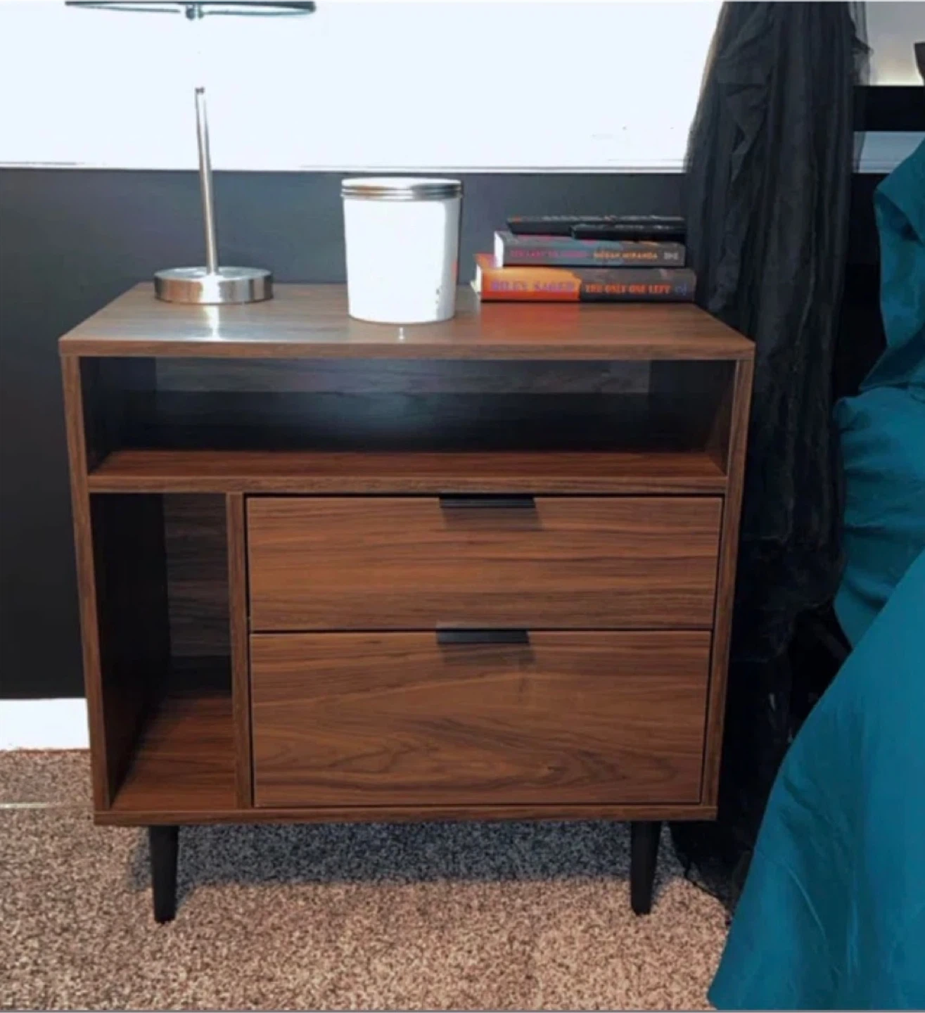 New Mid Century Modern Storage Side Table or Nightstand Walnut