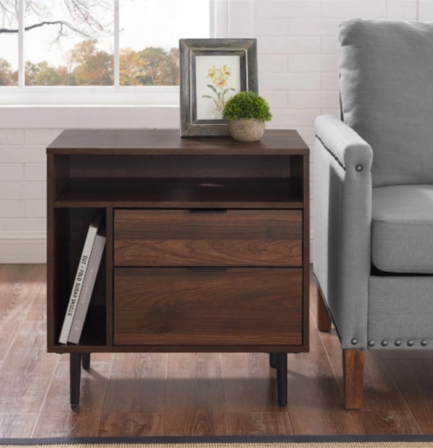 New Mid Century Modern Storage Side Table or Nightstand Dark Walnut