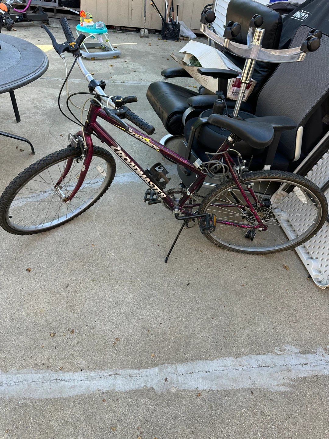 1 / 31 / 3Buy & SellRoadmaster Mountain Bike - PurpleRoadmaster Mountain Bike - Purple$55Selling a Roadmaster mountain bike in purple. It features Shimano components for reliable shifting. Great for casual rides!ConditionGoodWHERE TO MEETCheck LocationView MapSELLERverifiedBennyMelrose Park19615 reviews3 chats·5 favorites·79 viewsSEND CHAT TO SELLERHi Benny! I’m interested in your listing.Hi Benny! I’m interested in your listing.Get the Karrot app to chatSign In to chat