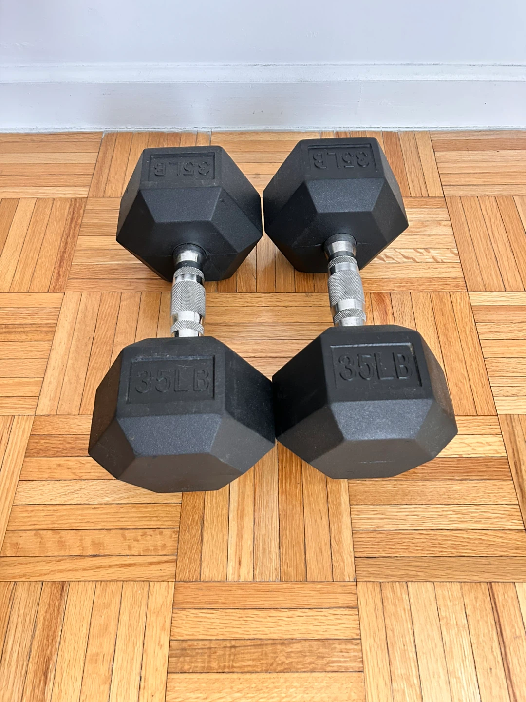 2 Pcs - 35 lbs Hex Dumbbells/Rubber Coated
