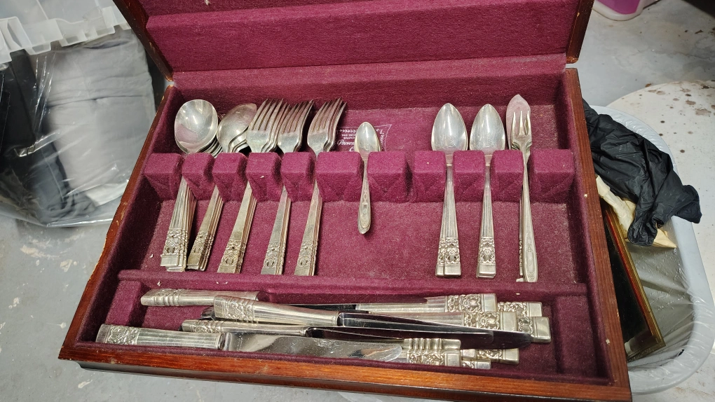 Selling a beautiful vintage silverware set that comes in a wooden box. The silverware is in good condition and has an elegant design. The wooden box has a red velvet interior to keep the silverware organized and protected. Perfect for adding a touch of classic charm to your dining experience! silver plated aka community silver made by Gorham