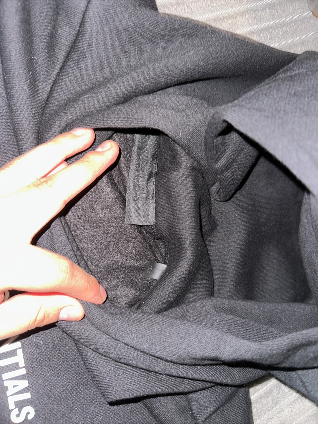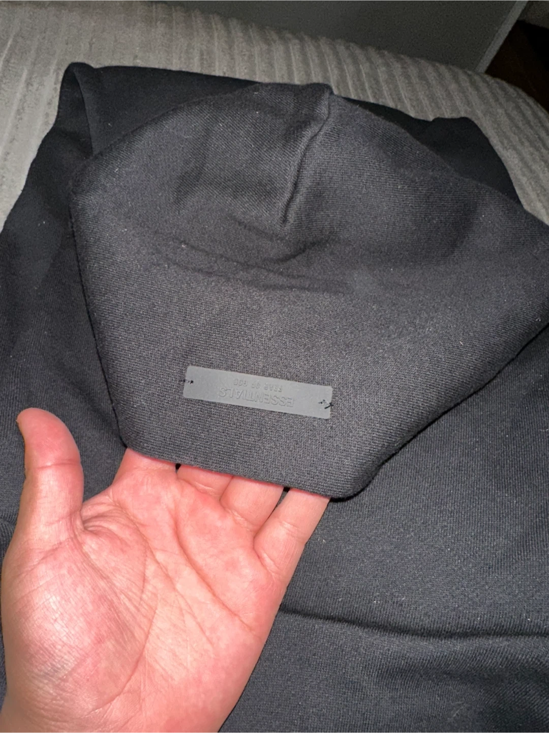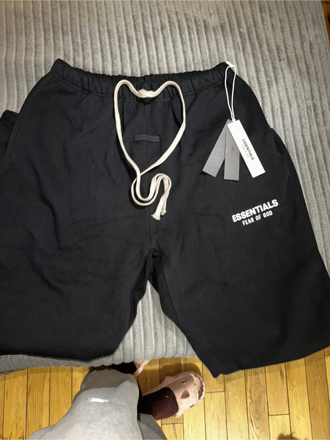 This set includes a black Essentials Fear of God hoodie and matching pants Both items are black and made of comfortable material. They're perfect for casual wear. Includes original packaging.