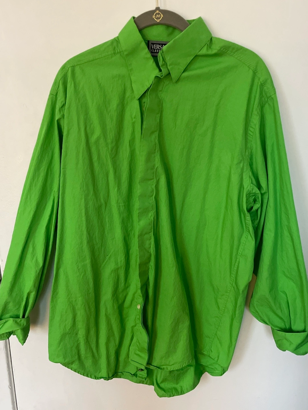Versace Men's long-sleeve button-up shirt. Bright lime green color. Classic fit. Great for adding pop to any outfit!