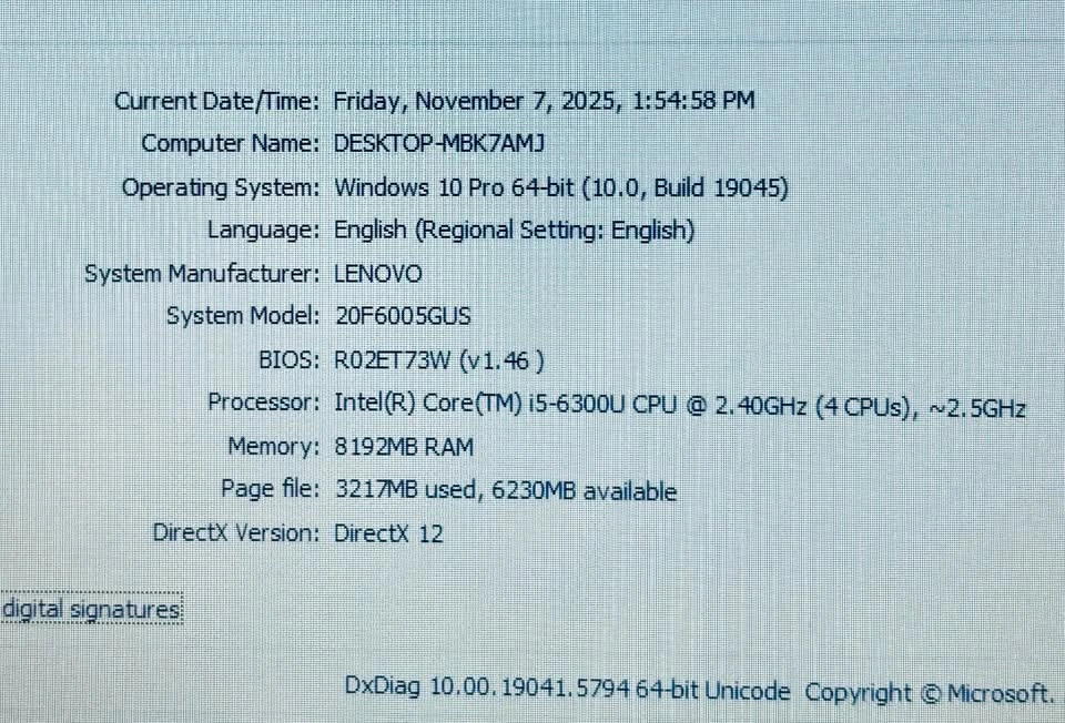 Lenovo Core i5-6300 2.50Ghz 8GB 256GB Windows 10 Pro