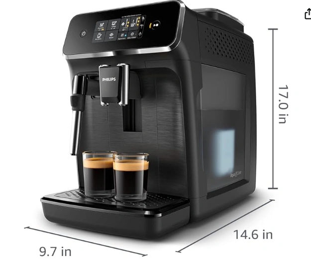 Philips 2200 Series Fully Automatic Espresso Machine, Classic Milk Frother, 2 Coffee Varieties, Intuitive Touch Display, 100% Ceramic Grinder, AquaClean Filter, Aroma Seal, Black (EP2220/14)