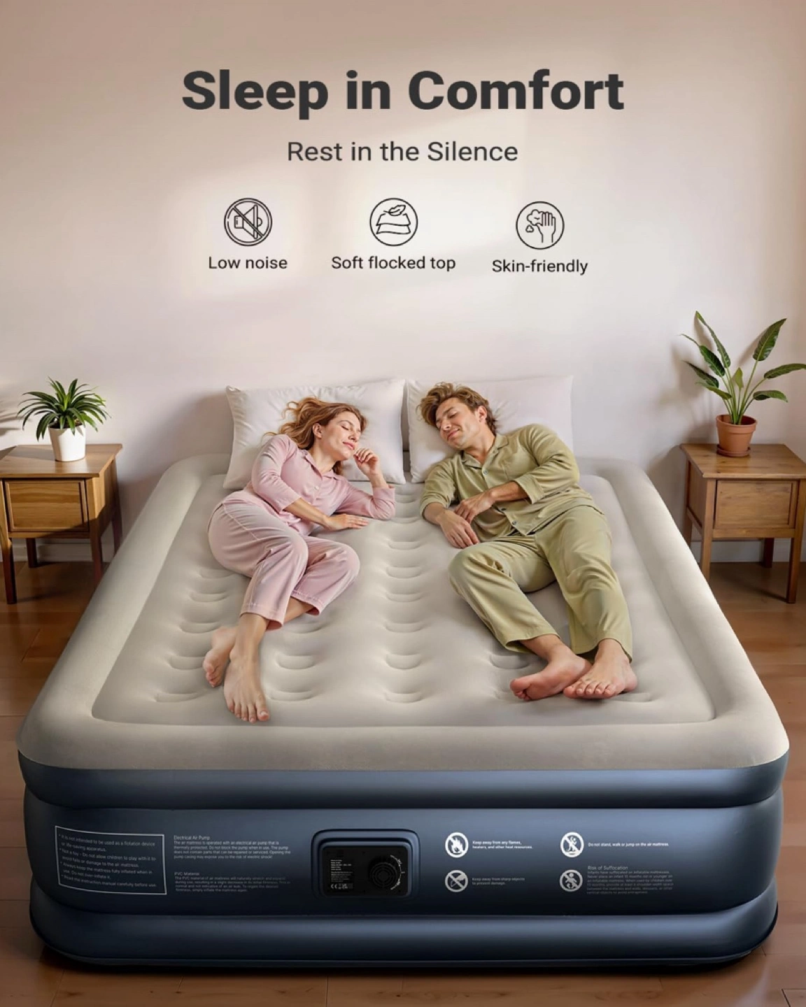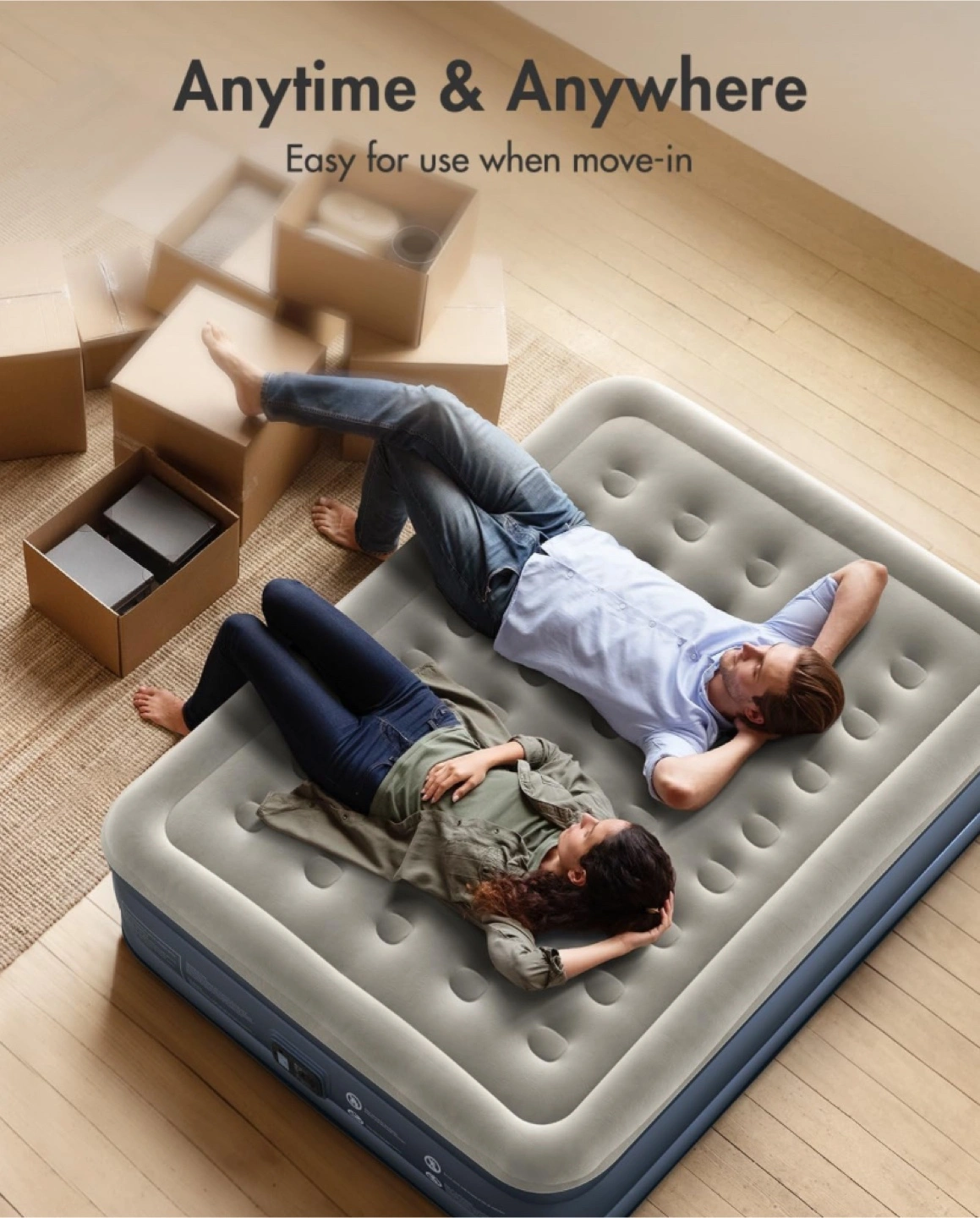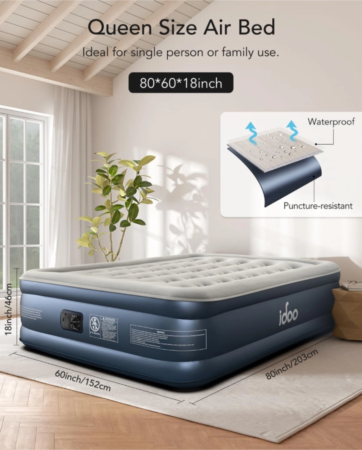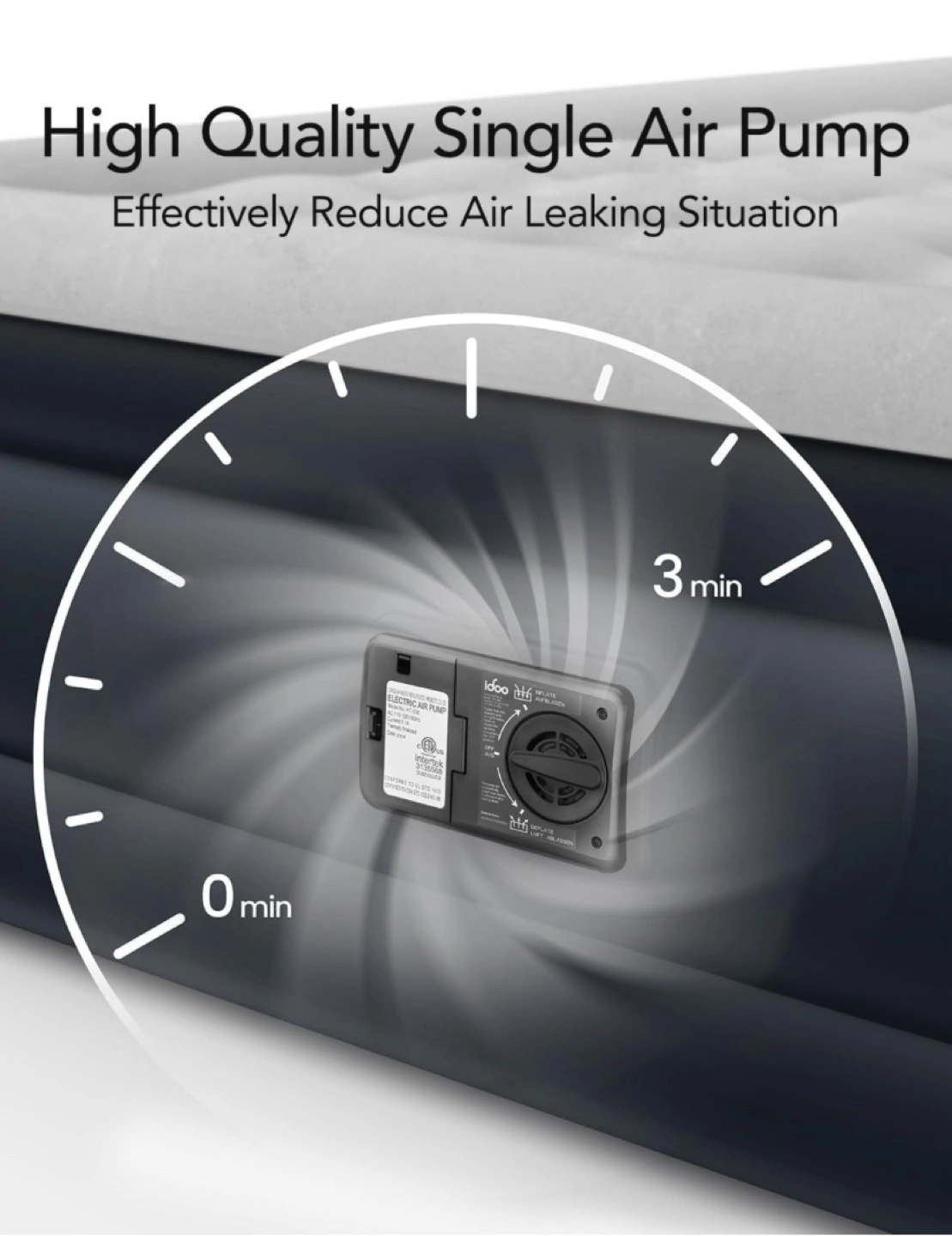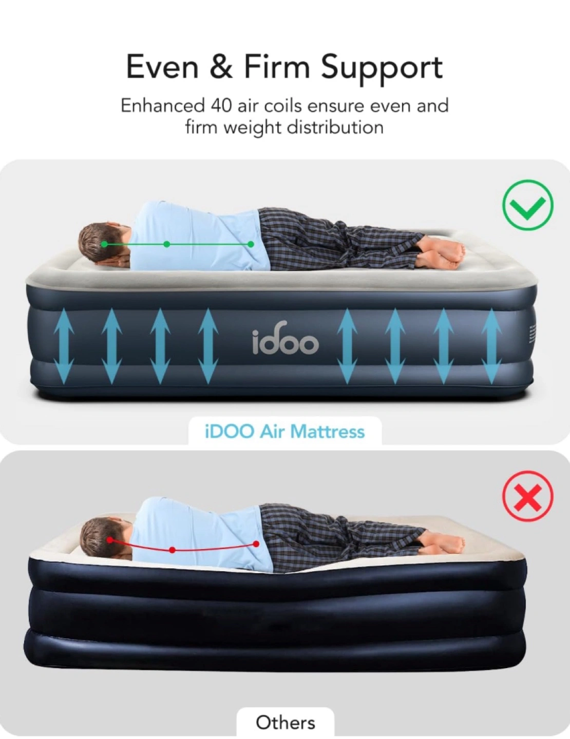 Get ready for a great night's sleep with this iDOO air mattress! It features enhanced 40 air coils to ensure even and firm weight distribution. Plus, the built-in electric pump makes inflation and deflation a breeze in just minutes. Enjoy comfort and convenience anytime, anywhere!