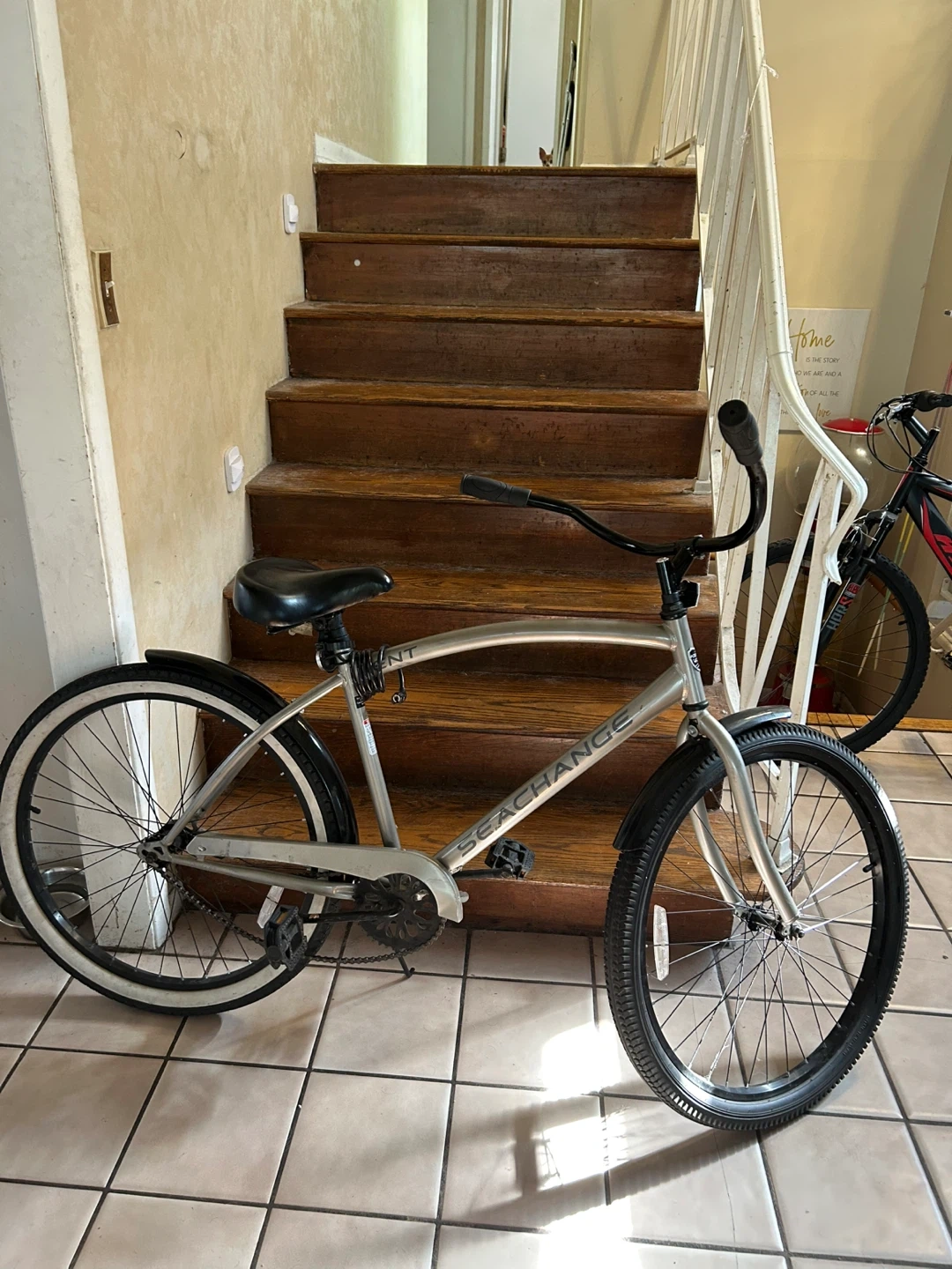 Selling a SEACHANGE cruiser bike in silver. It's perfect for leisurely rides around the neighborhood or along the beach. This bike is ready for a new home and some sunny adventures!