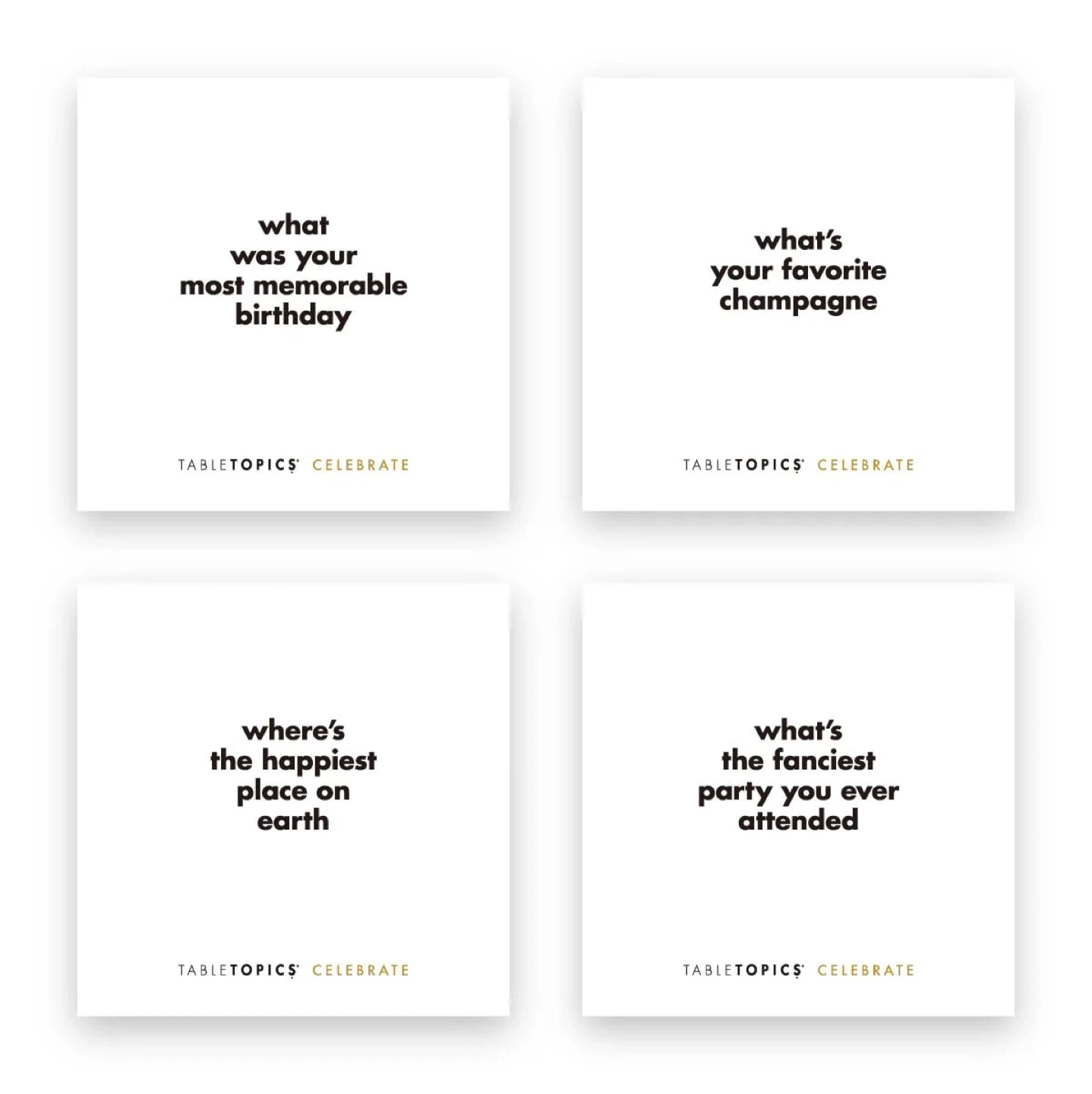 Indispensable Party Game: The 40 light and lively questions in Celebrate will fill your party with great conversation and loads of laughs. Bring this set of conversation starter cards to celebrate birthdays, anniversaries, holidays, promotions, or graduations.