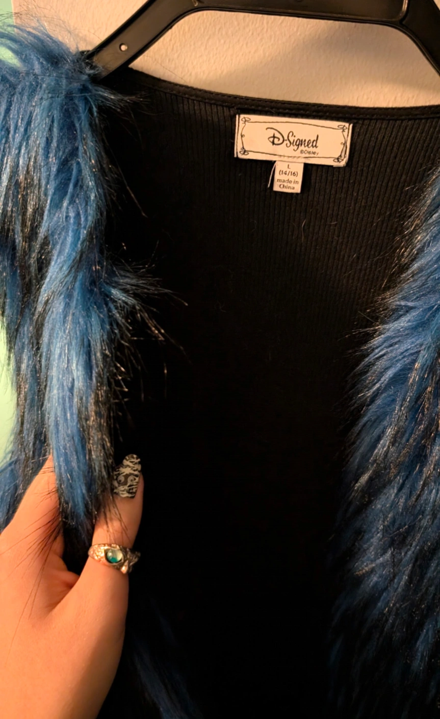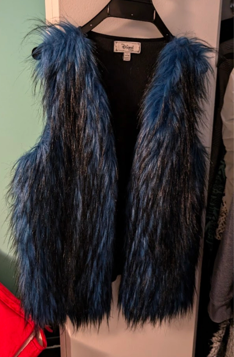 Add a touch of magic to your wardrobe with this Disney Blue and Black Faux Fur Vest. Perfect for Disney fans and fashionistas alike, this cozy and stylish vest features a unique design that sets it apart. Excellent pre-owned condition with no visible signs of wear. This vest is perfect for layering over sweaters, long-sleeve shirts, or dresses, adding a fun and fashionable element to any outfit. ldeal for both casual and dressier occasions. From home with dogs. Chicago 60618 near Damen & Montrose