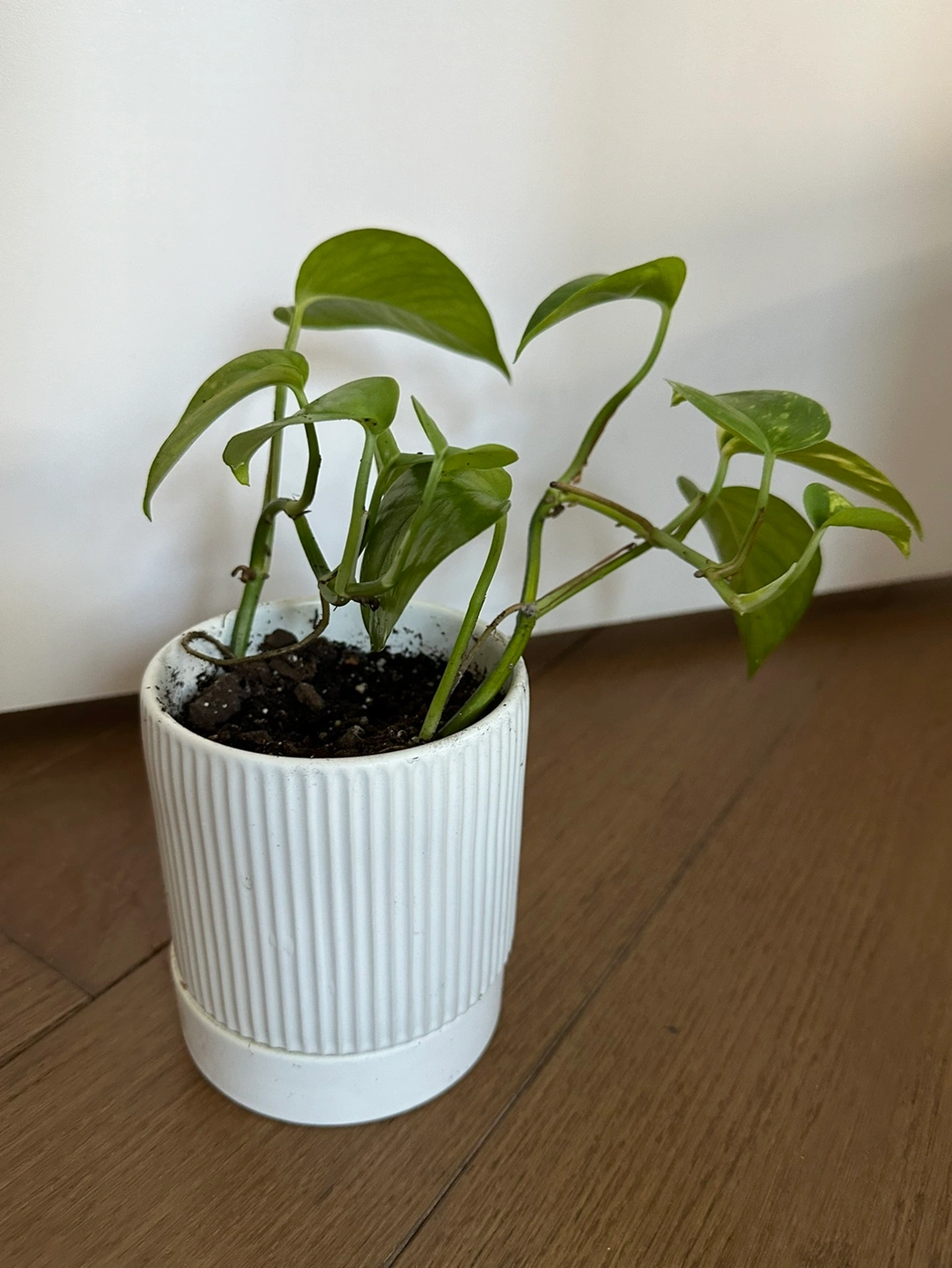 Golden Pothos plant in 4 inch white ceramic pot with drainage tray