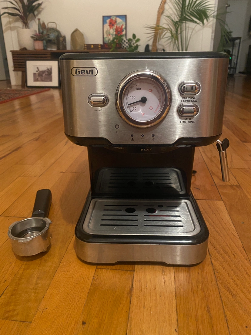 Gevi espresso maker in good condition with milk frothing attachment. Used for a few years without issues, just upgrading to a bigger machine. Retails at $150, freshly cleaned!