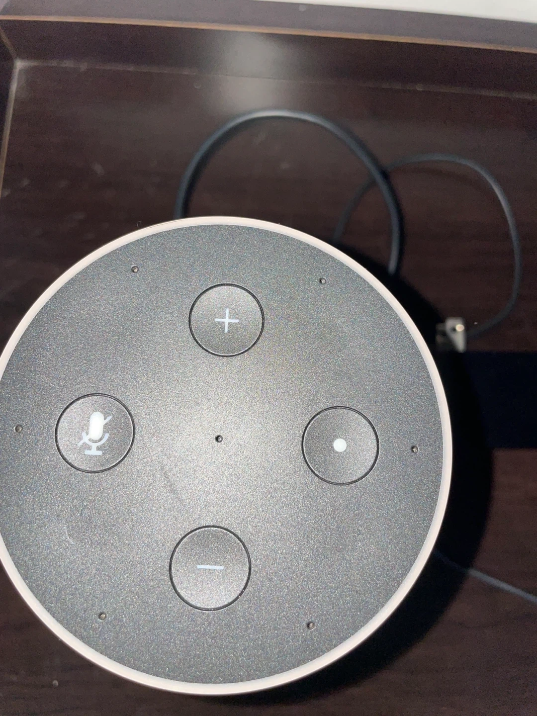 This is an Amazon Echo 2nd Generation smart speaker in Charcoal. It's a smart home device with voice control. Includes power adapter.