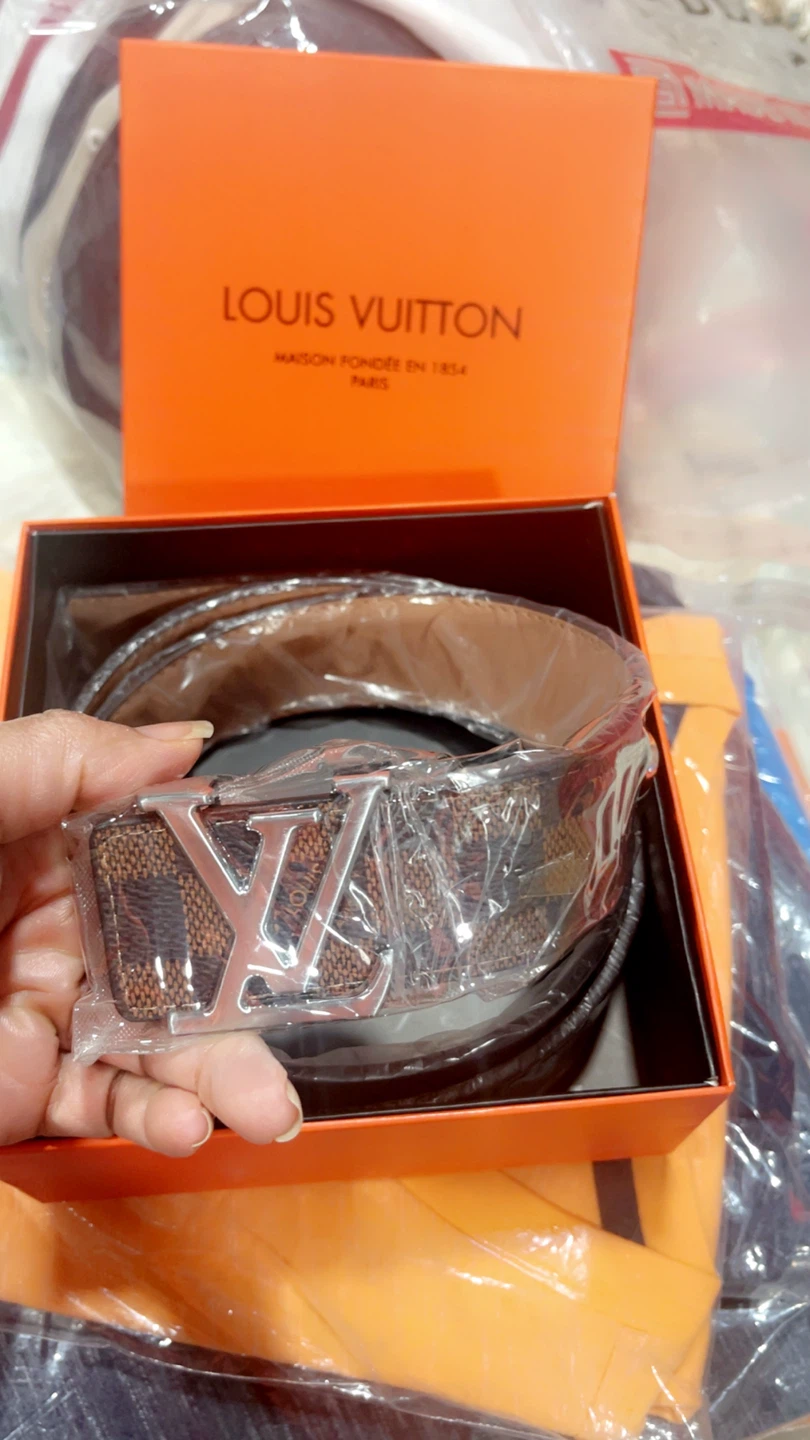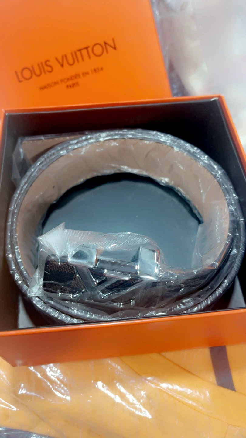 Louis Vuitton belt in brown with iconic LV buckle. Includes original box. Belt is wrapped in plastic.