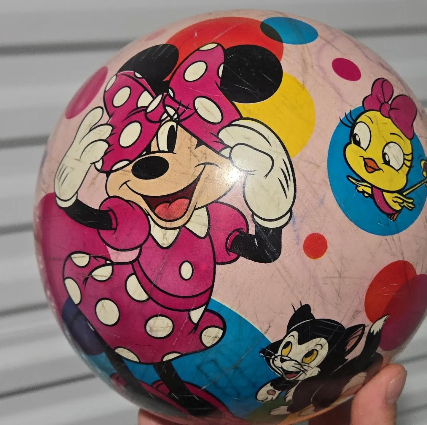 This is a fun play ball featuring Minnie Mouse and her friends. It's a great size for little hands to toss and play with. Perfect for indoor or outdoor fun!