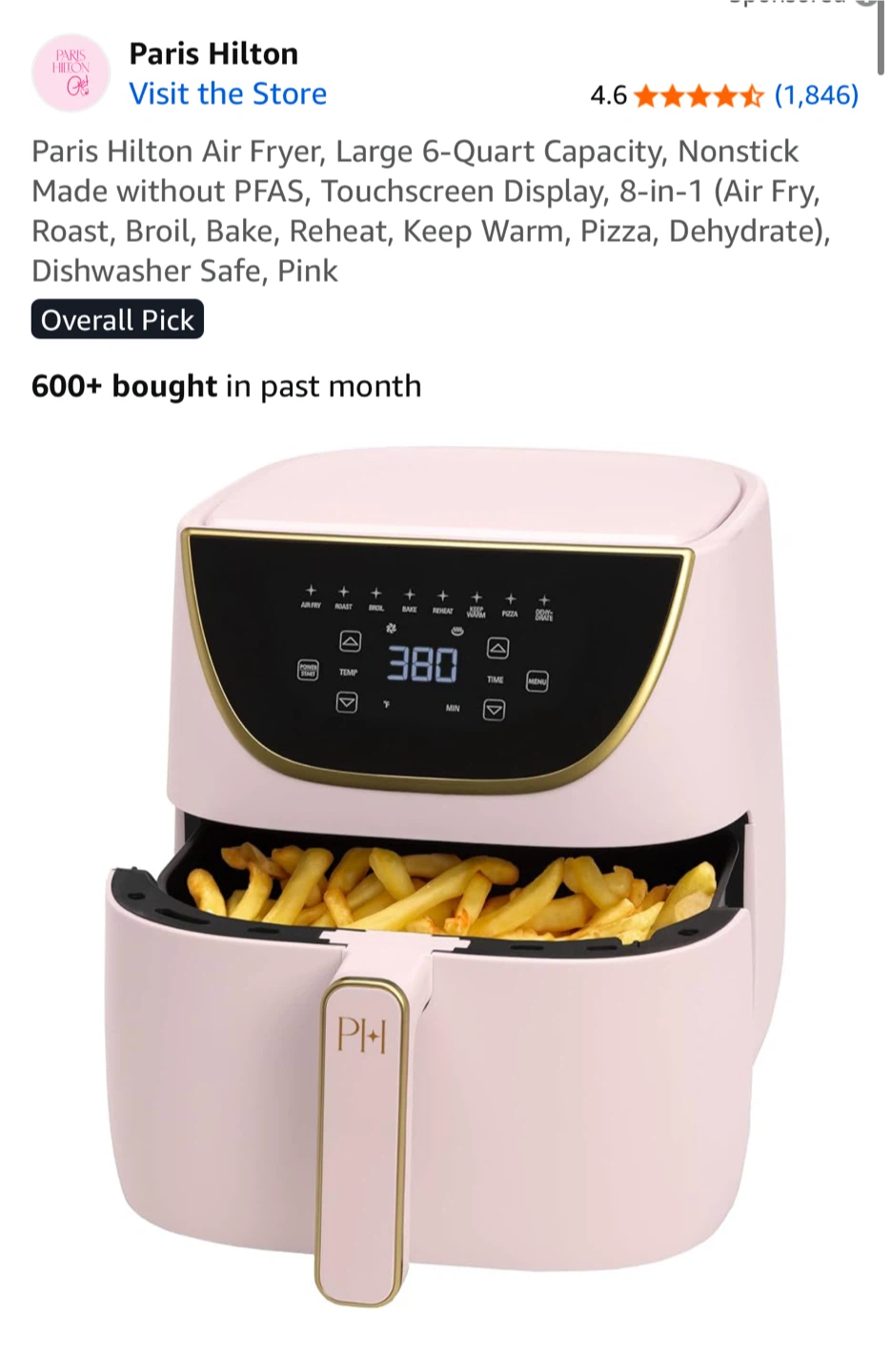 Selling a lovely pink air fryer! 6qt capacity, lots of room. Fancy touch screen with a ton of modes and options. Really quiet too.