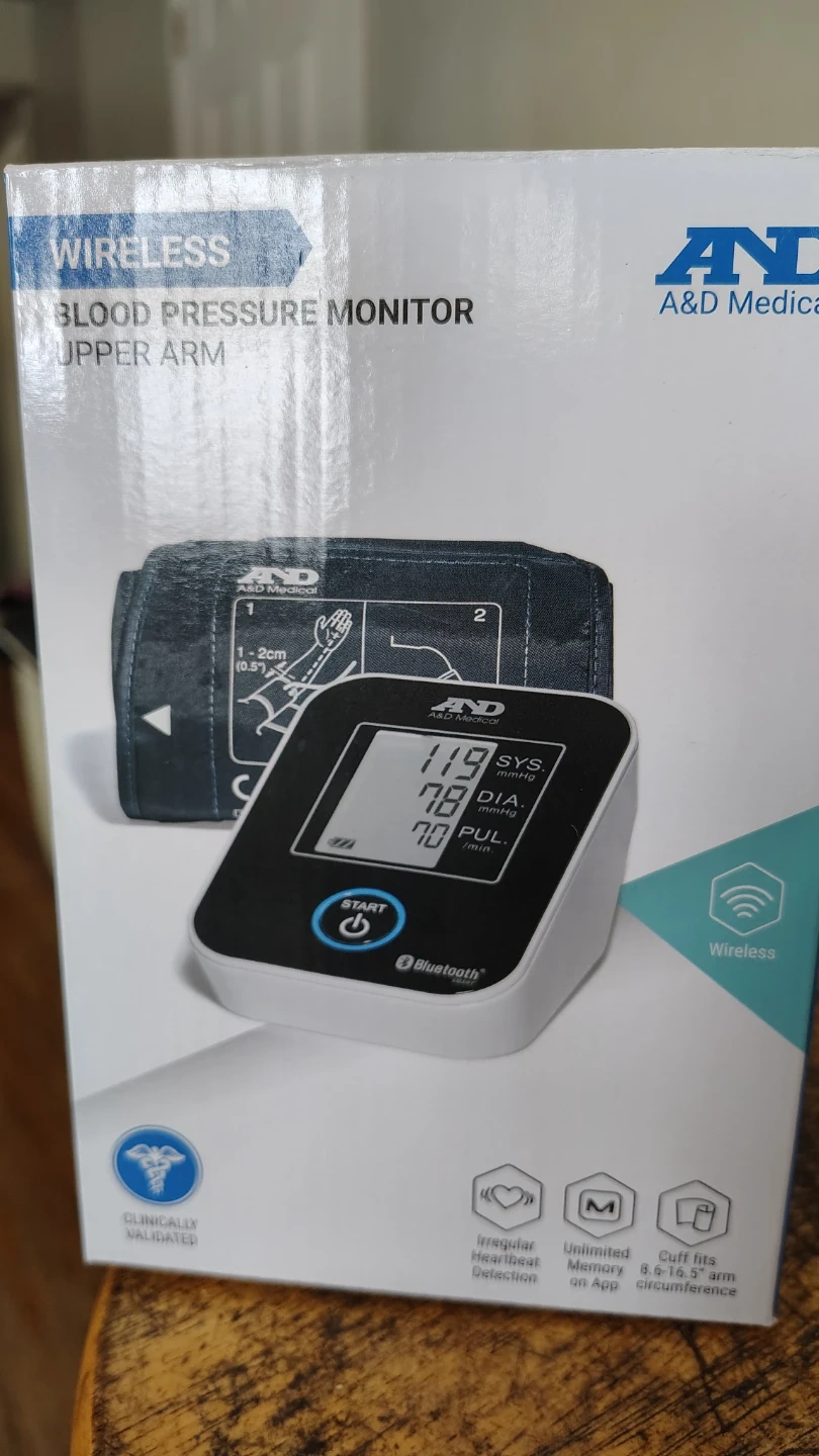 This is a wireless upper arm blood pressure monitor from A&D Medical. It features clinically validated irregular heartbeat detection and unlimited memory on the app. The cuff fits arm circumferences from 8.6 to 16.5 inches.