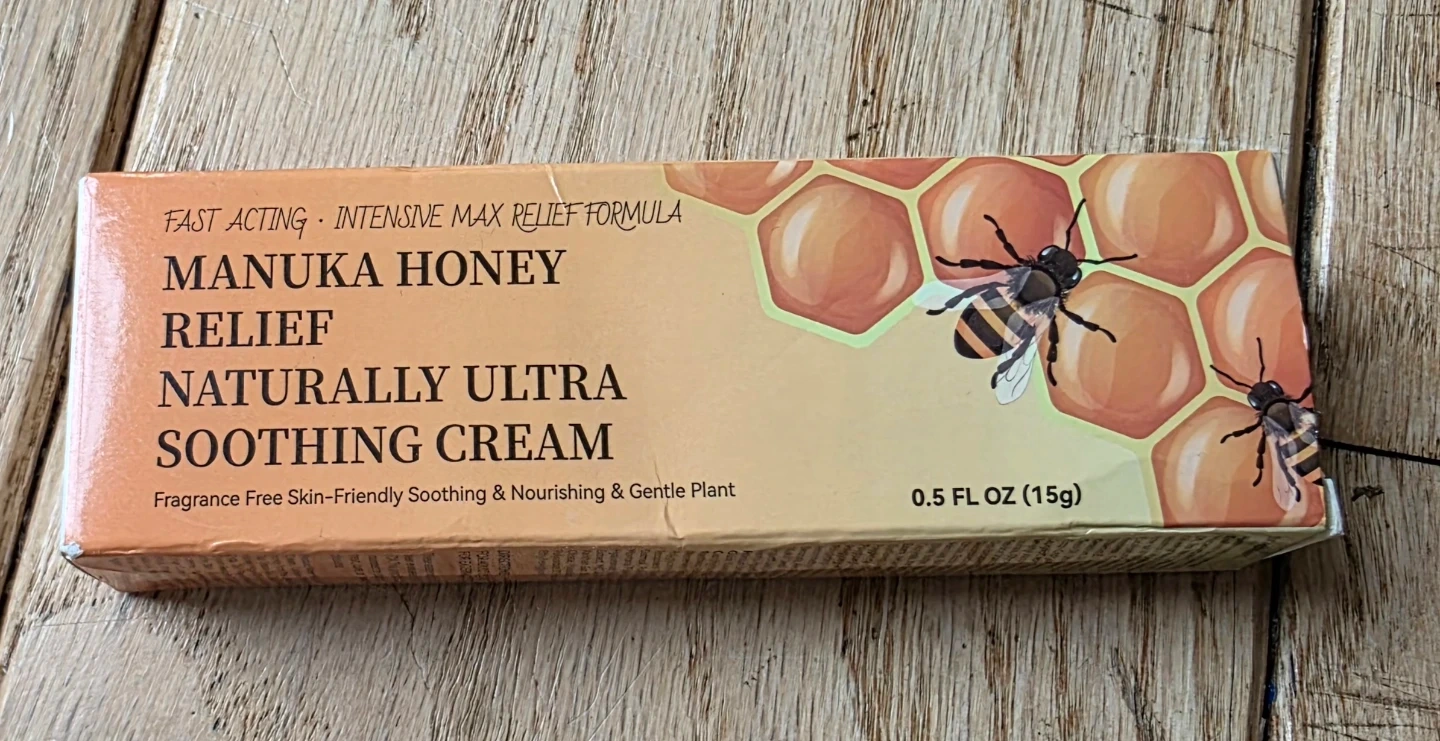 I'm selling Manuka Honey Relief Naturally Ultra Soothing Cream. It's a fragrance-free, skin-friendly, soothing, nourishing, and gentle plant-based cream. Contains 0.5 fl oz (15g).