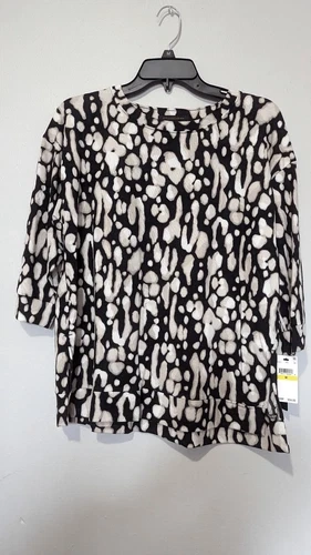 New loose fit sleeping top. Pullover Sleep Top In Black Animal With Split Side Seam Hem