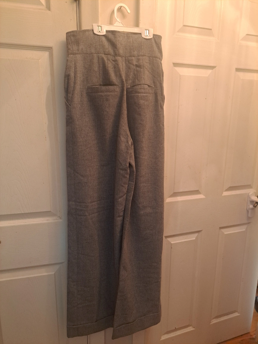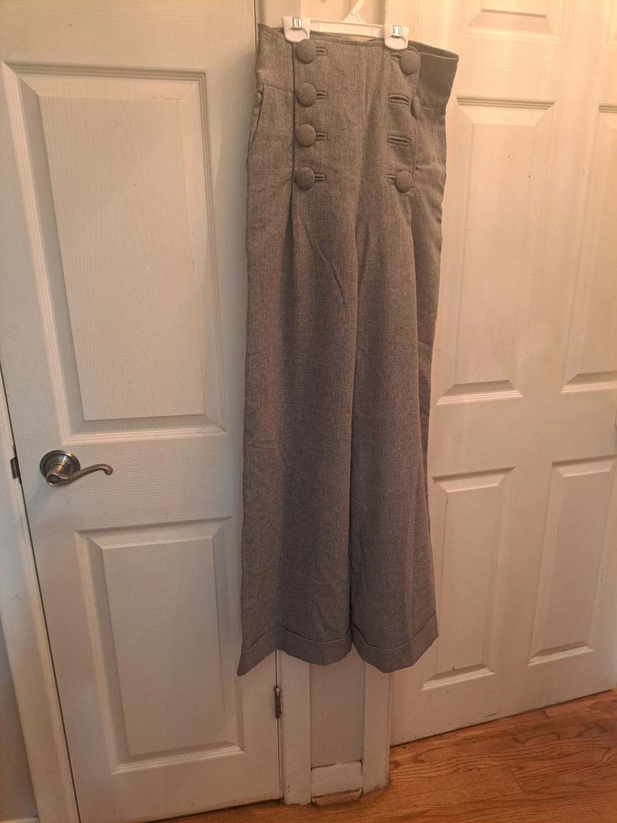 Women's Grey wide leg trousers with a high waist and button detail. Size 4 Brand New.