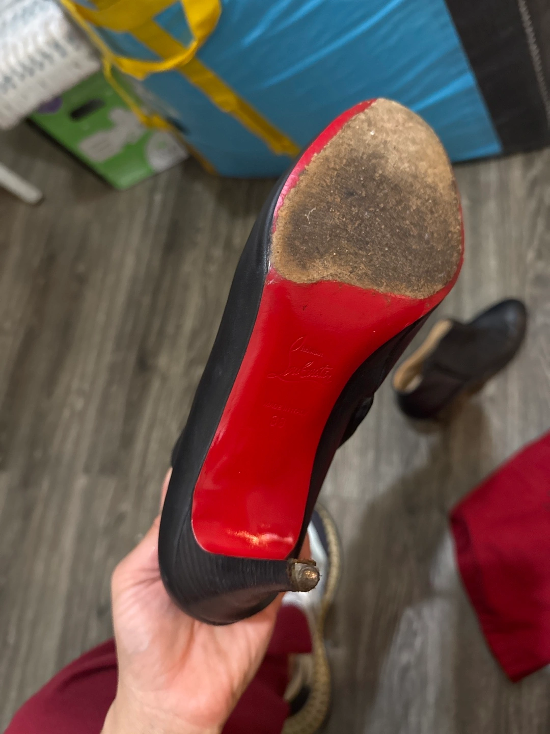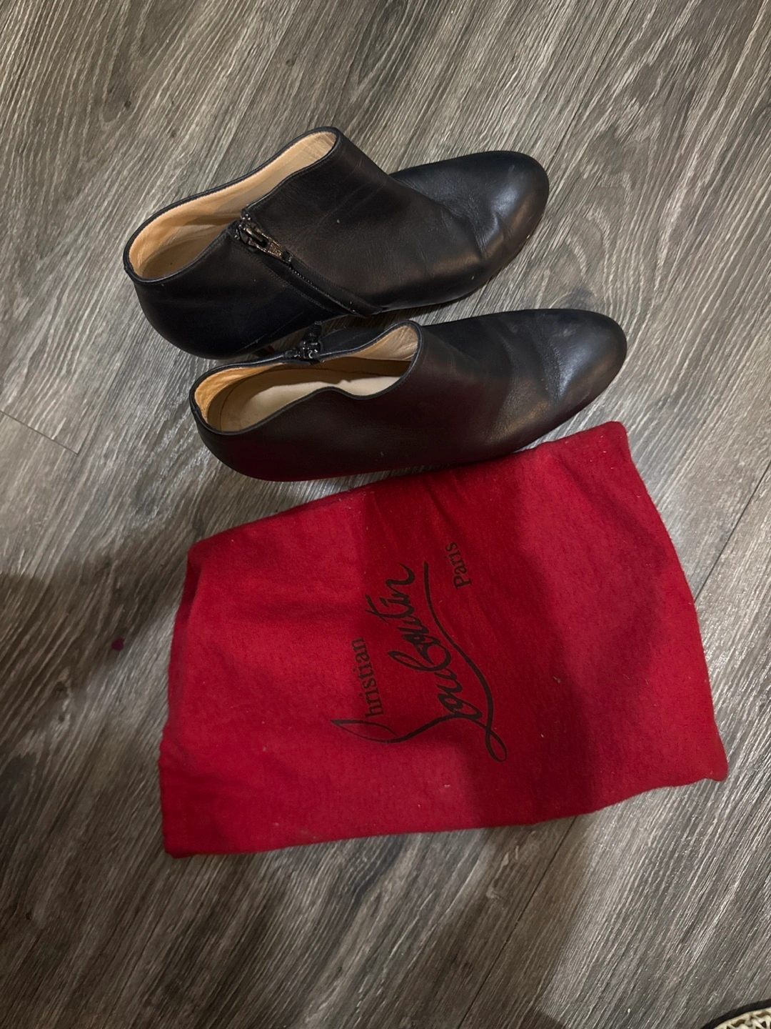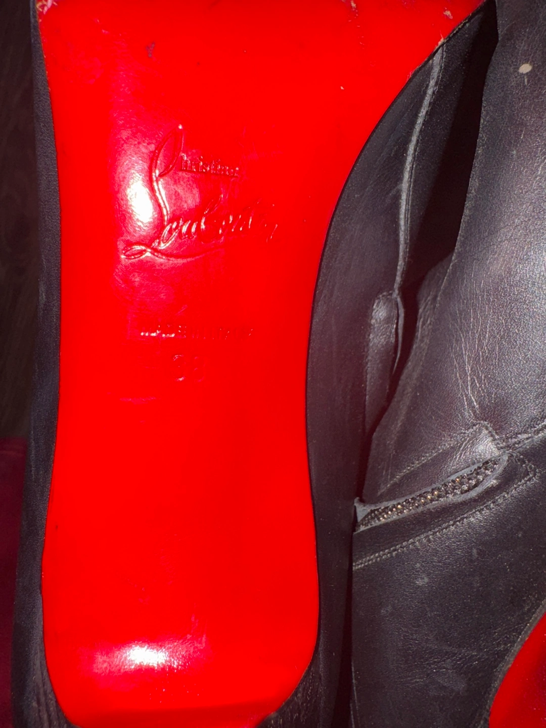 Selling a pair of Christian Louboutin black leather heels. They are a size 38 and show some signs of wear. Comes with the original red dust bag!
