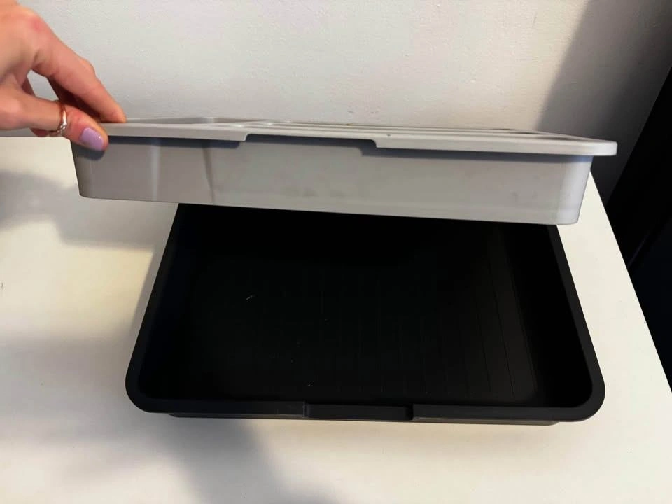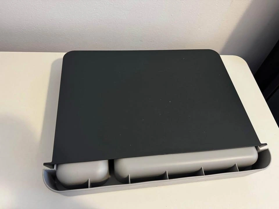 I'm selling a Joseph Joseph DrawerStore Cutlery Organizer. It's a gray and black space-saving kitchen drawer organizer tray for utensils. It's in great condition and ready to help organize your kitchen!