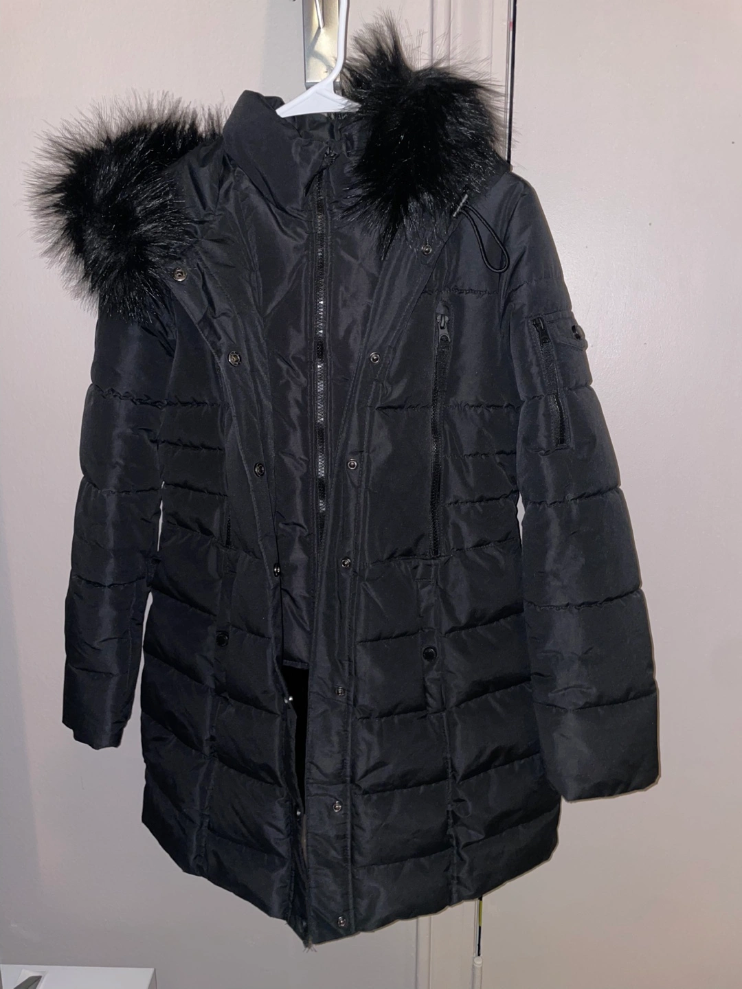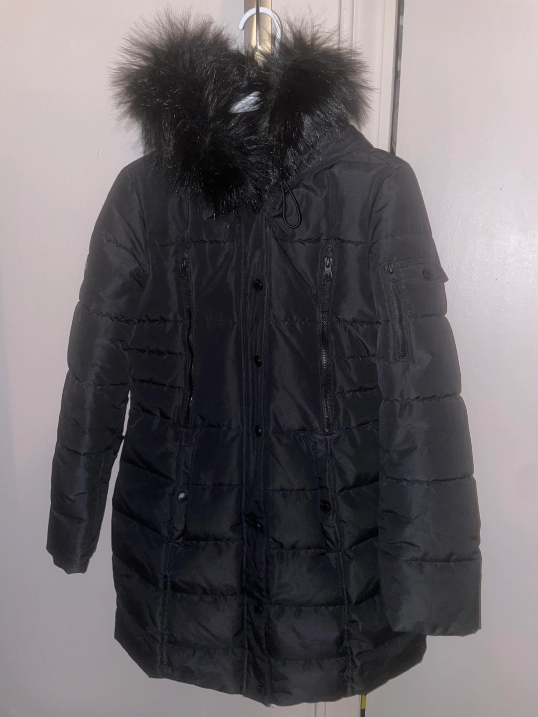 Women's Faux-Fur-Trim Hooded Puffer Coat. NAUTICA. Size S