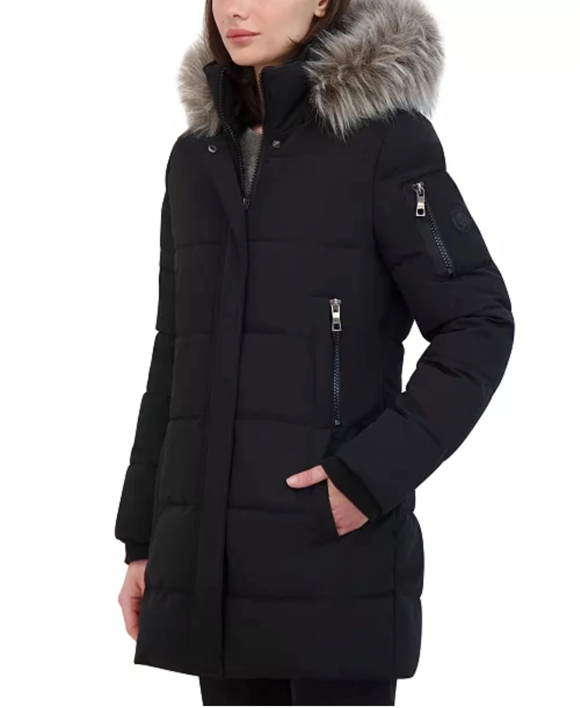 Keep so cozy in this Nautica puffer coat designed with gorgeous faux fur around the hood and finished with comfy knit cuffs.