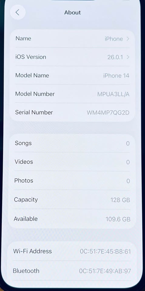 Apple Iphone 14 128GB UNLOCKED Fully Functional