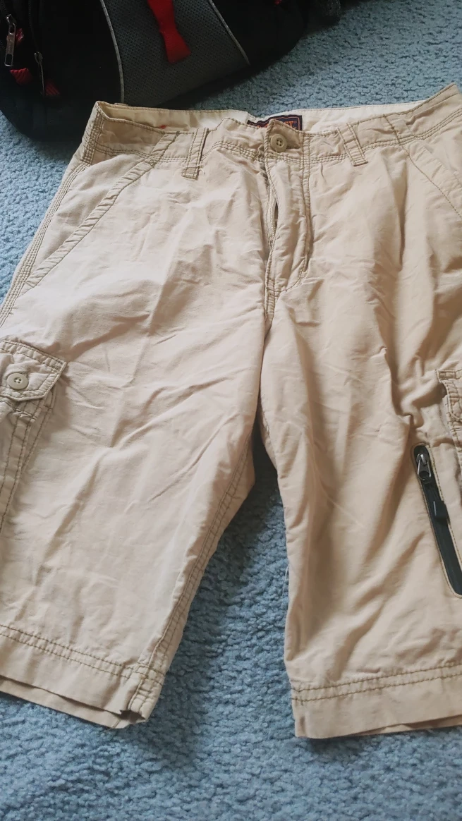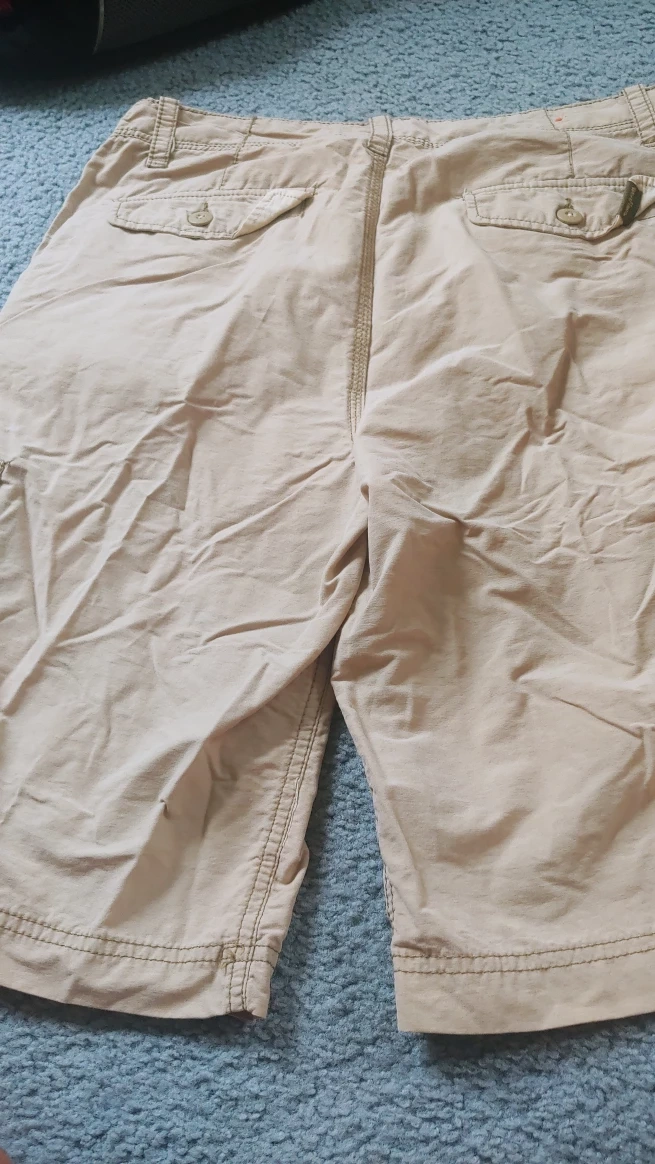 Selling a pair of mens cargo shorts in size 30. They are made of 75% cotton and 25% rayon. Great for casual wear!