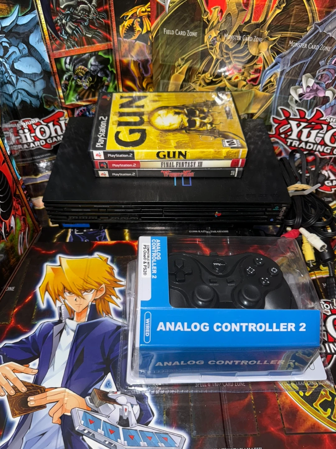 Selling a PlayStation 2 console with some games and a controller! The games included are GUN, Final Fantasy XII, and TriggerMan. Also comes with an Analog Controller 2